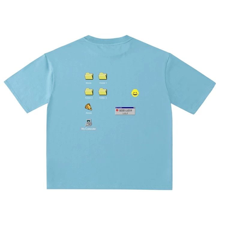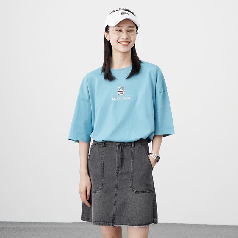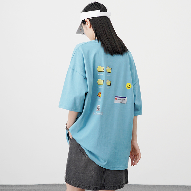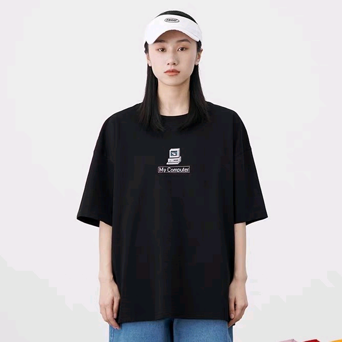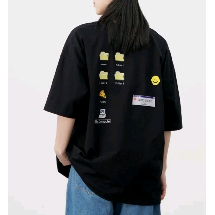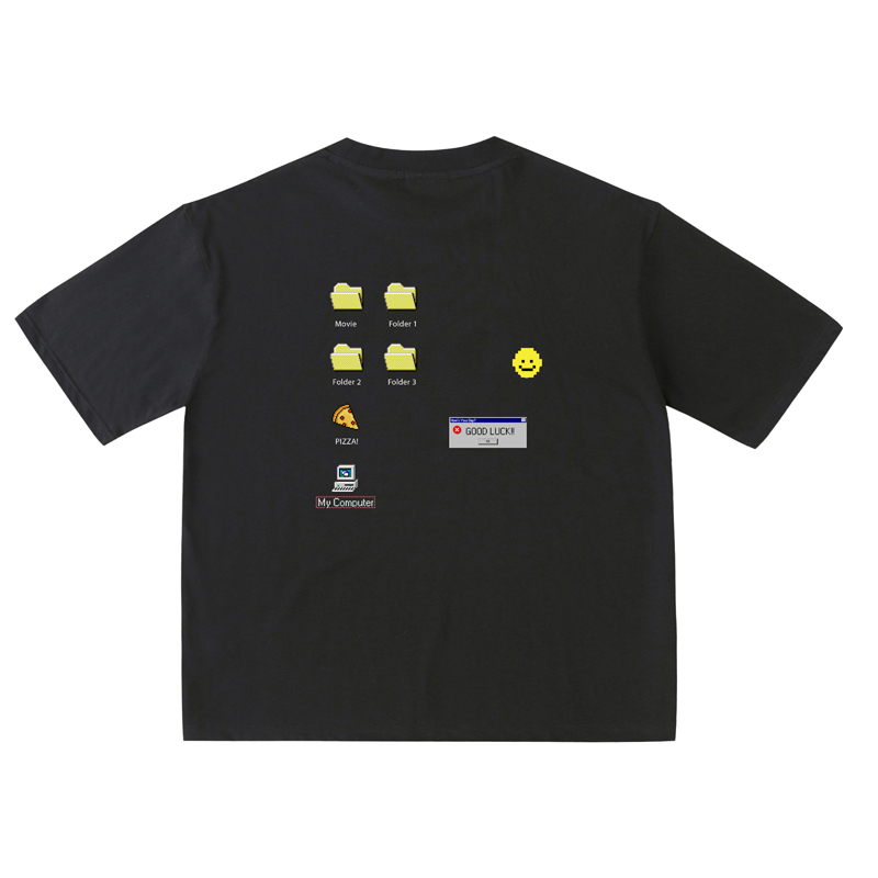 春夏时髦潮黑色短袖T恤女宽松设计感小众80s复古后背印花上衣 黑色 L