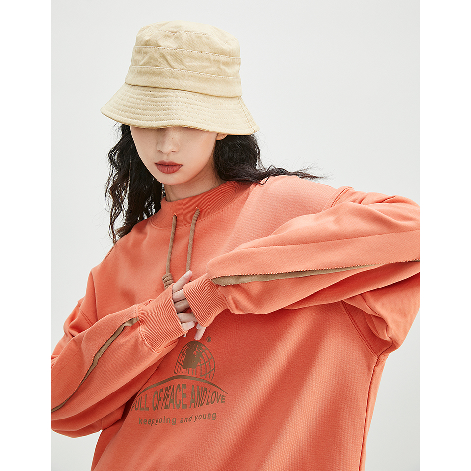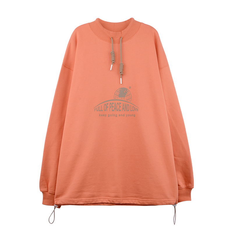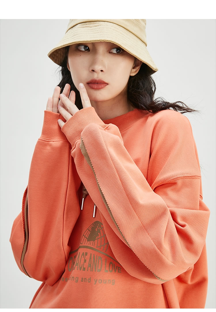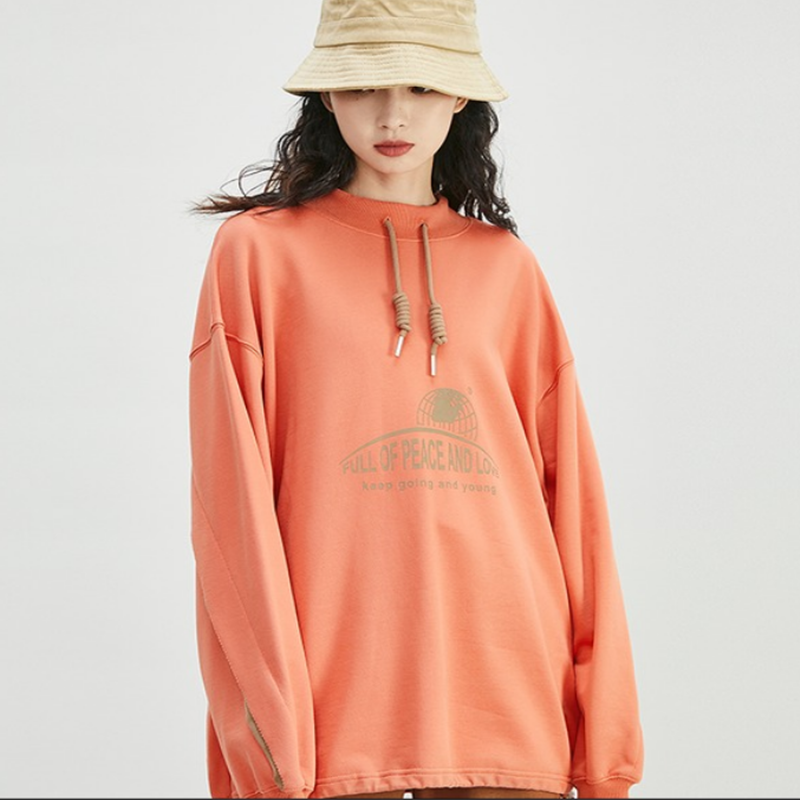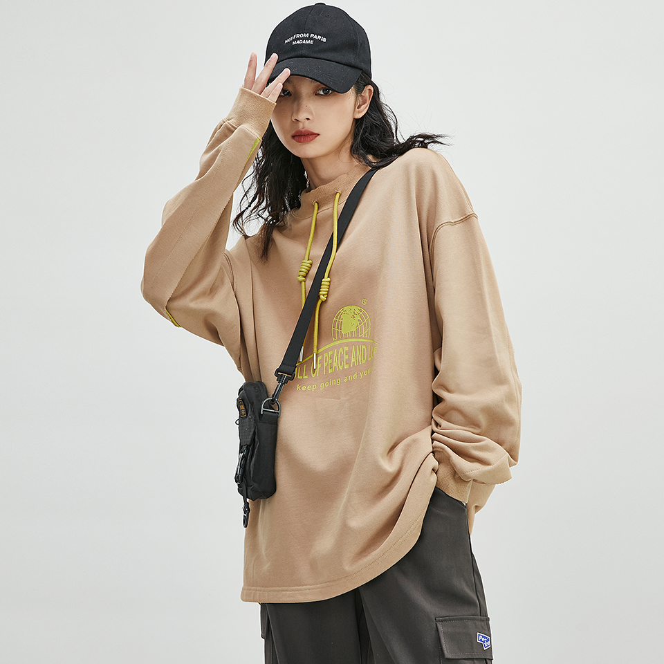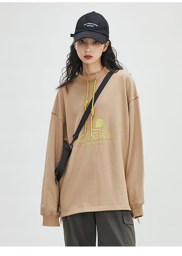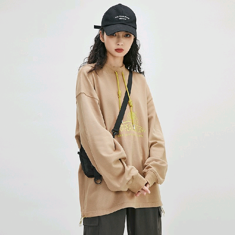 圆领卫衣女春秋薄款无帽印花宽松bf慵懒风长袖抽绳字母上衣 炭灰色 m