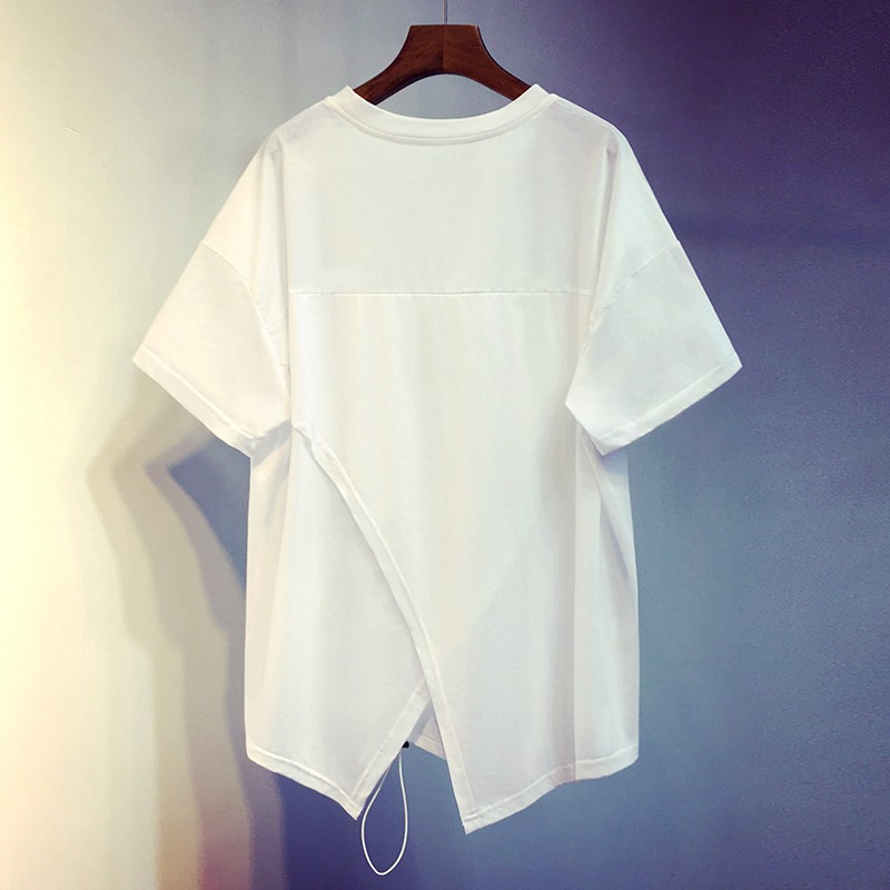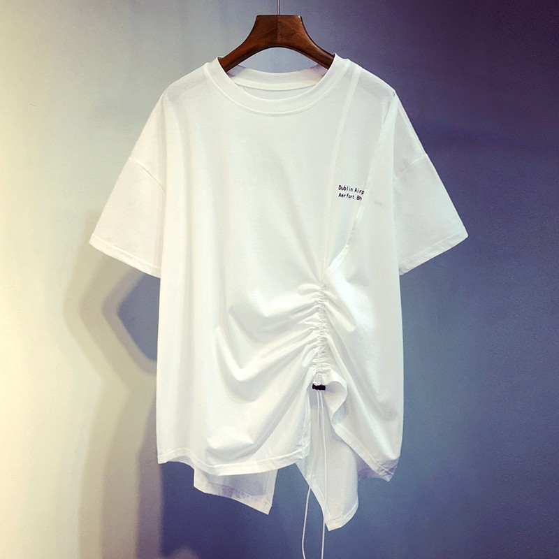 商品名称:南极人 短袖t恤女宽松夏季2021新款欧洲站ins潮抽绳白色体恤中长款设计感休闲百搭半袖女士上衣 GDB203-A039-白色 M建议80-105斤