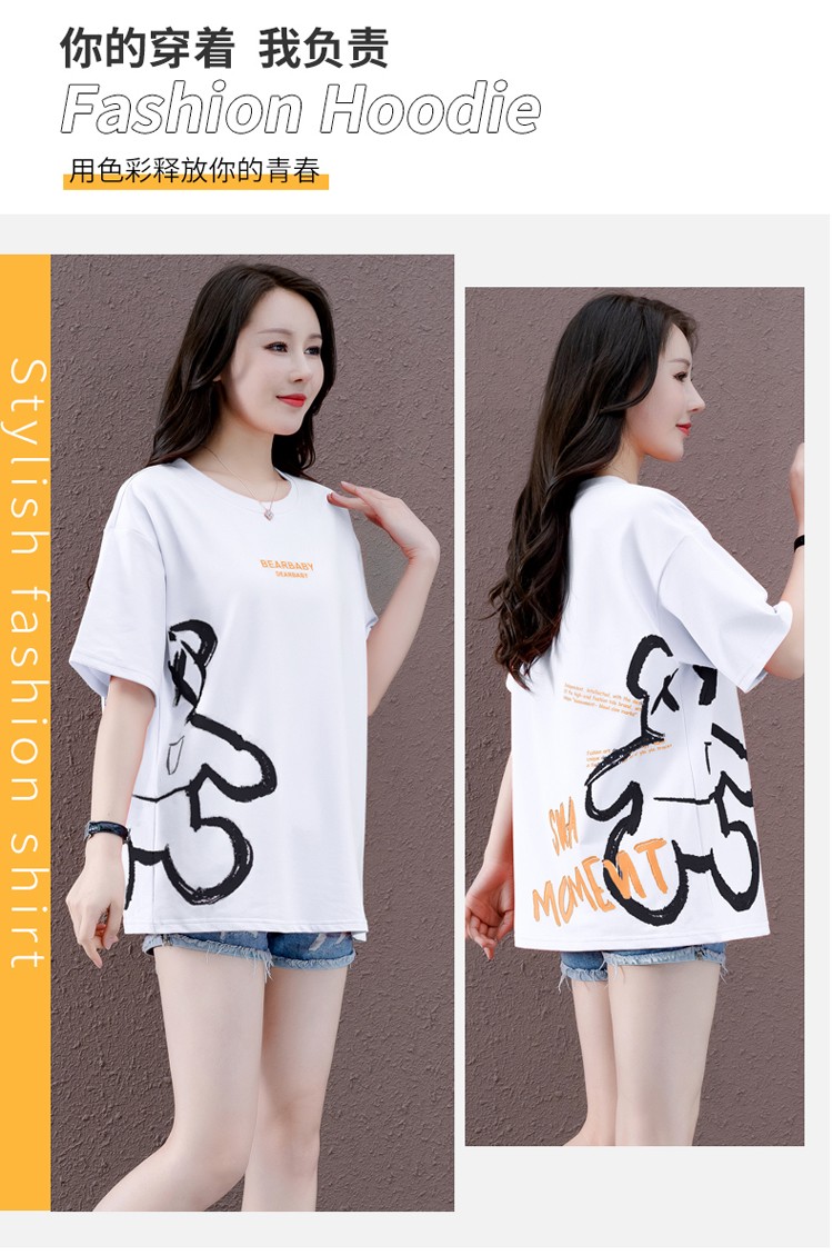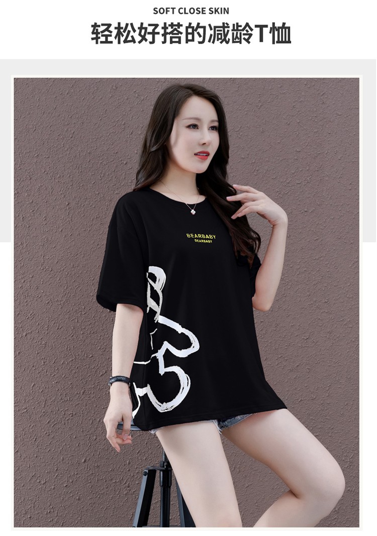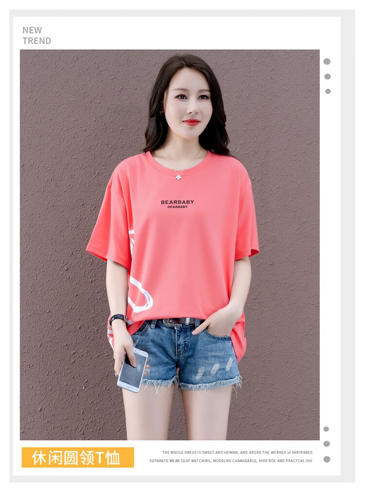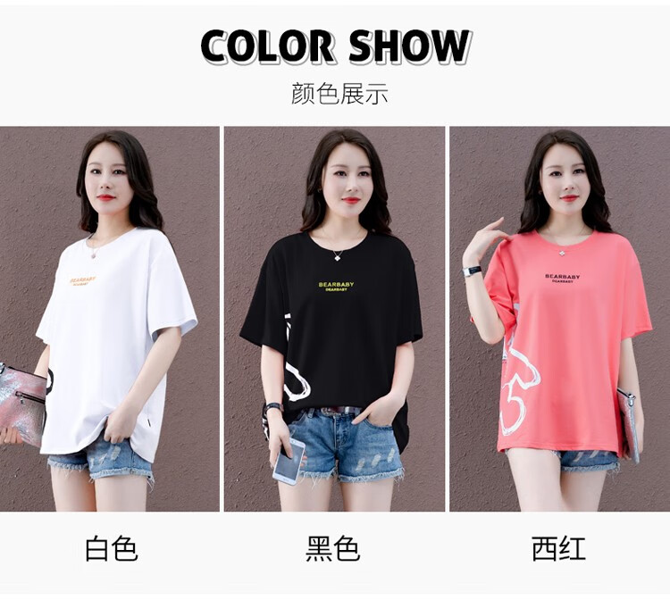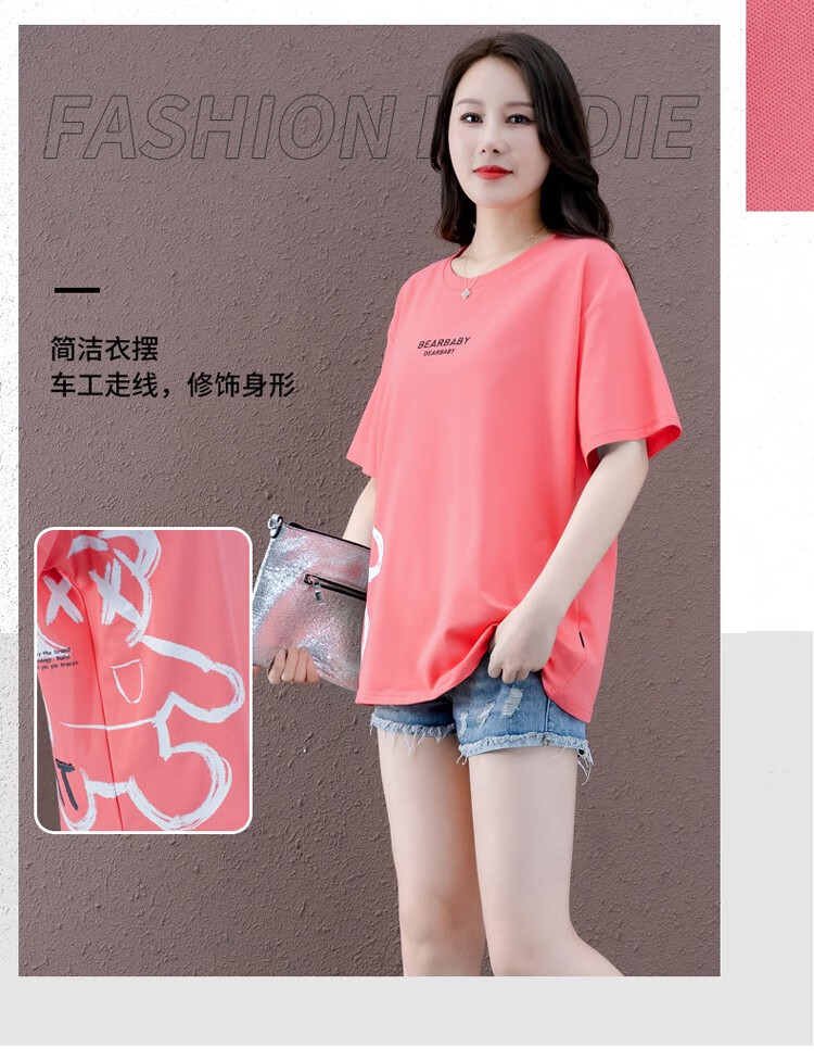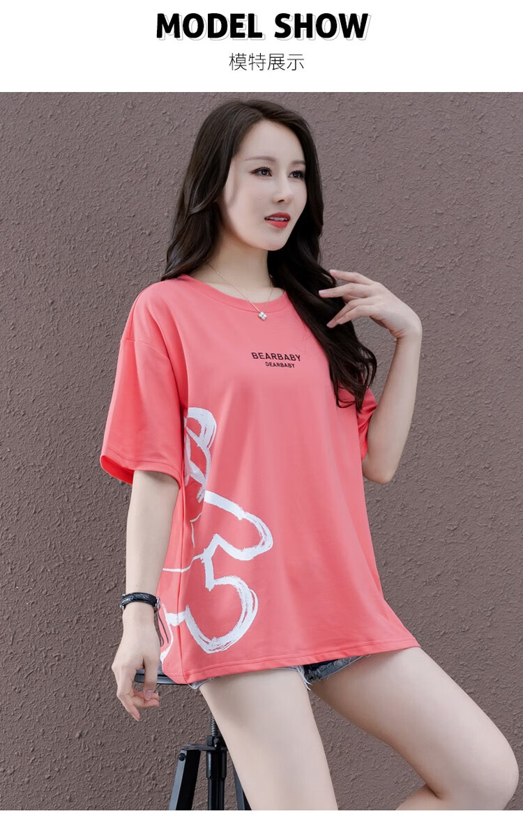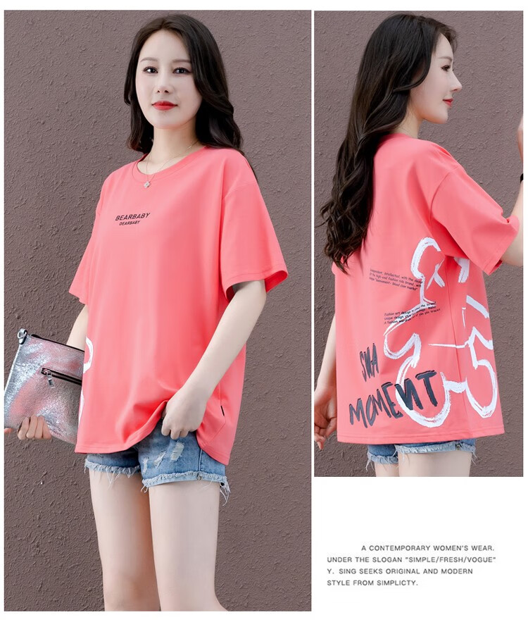 商品名称:浅小姐短袖T恤女2021年新款潮夏季女装衣服宽松半袖中长款洋气卡通上衣 西瓜红 L