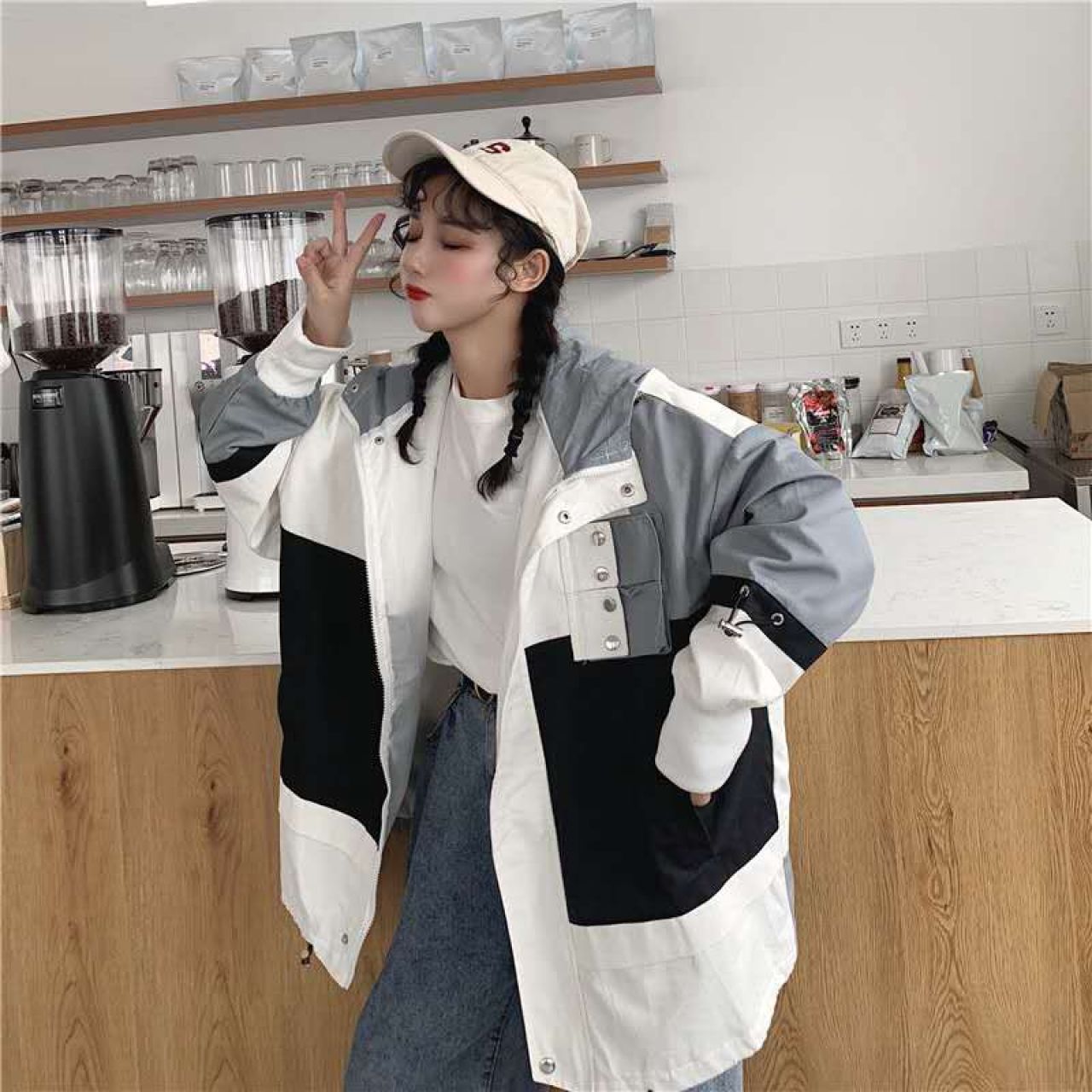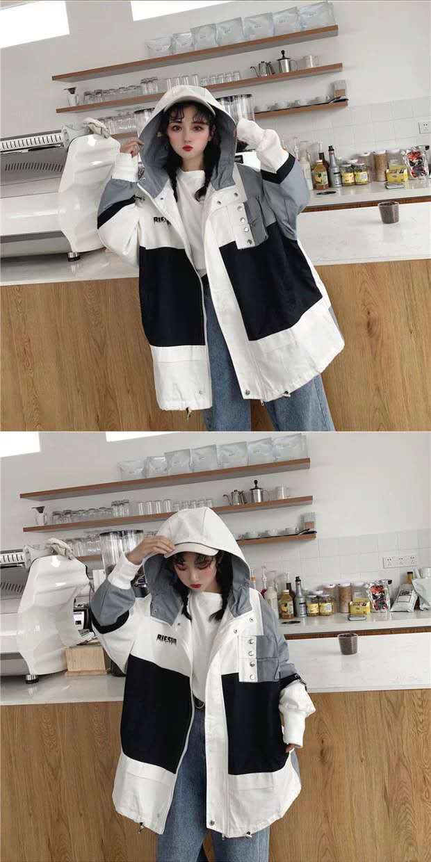 waitmore外套2020新款韩版女学生原宿拼接工装服女宽松bf上衣夹克