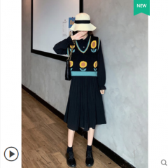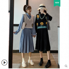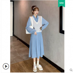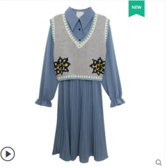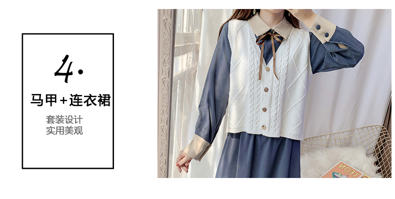 颜色分类: 蓝色裙+白马甲 909花瓣领蓝+
