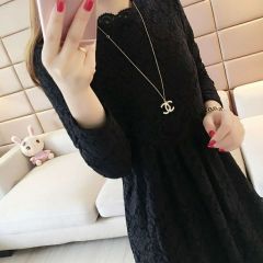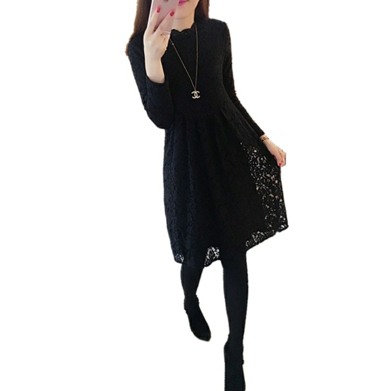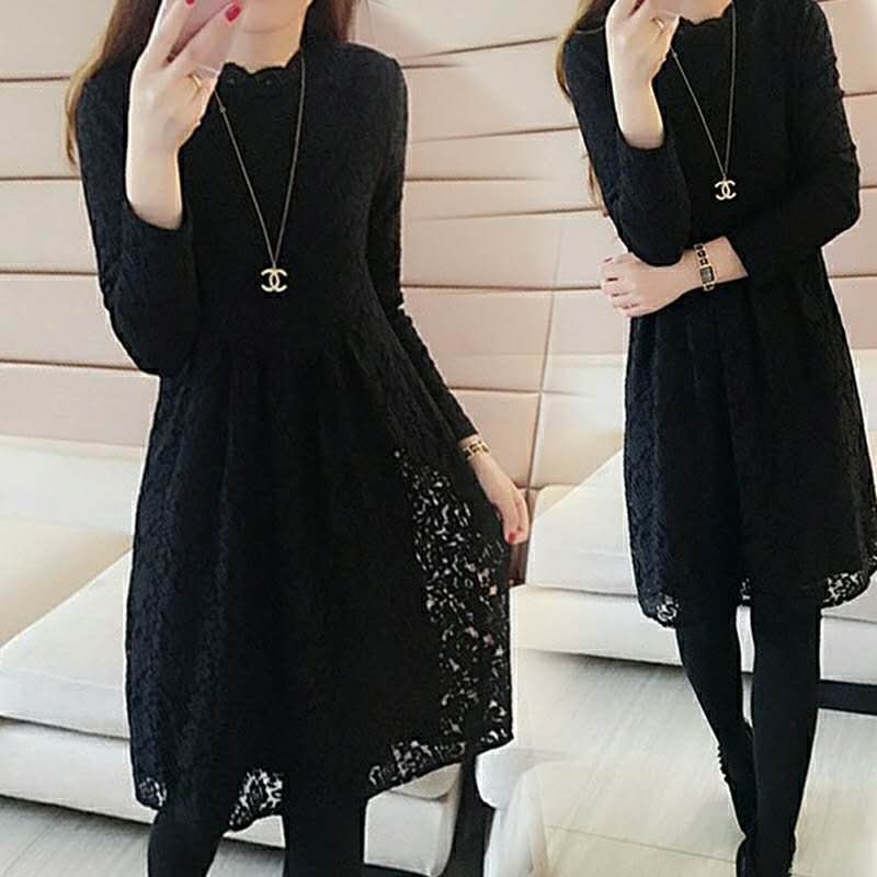 大码女装2020新款洋气减龄蕾丝连衣裙女秋胖妹妹显瘦长袖流行裙子68