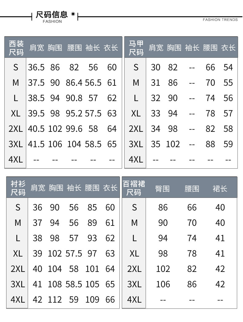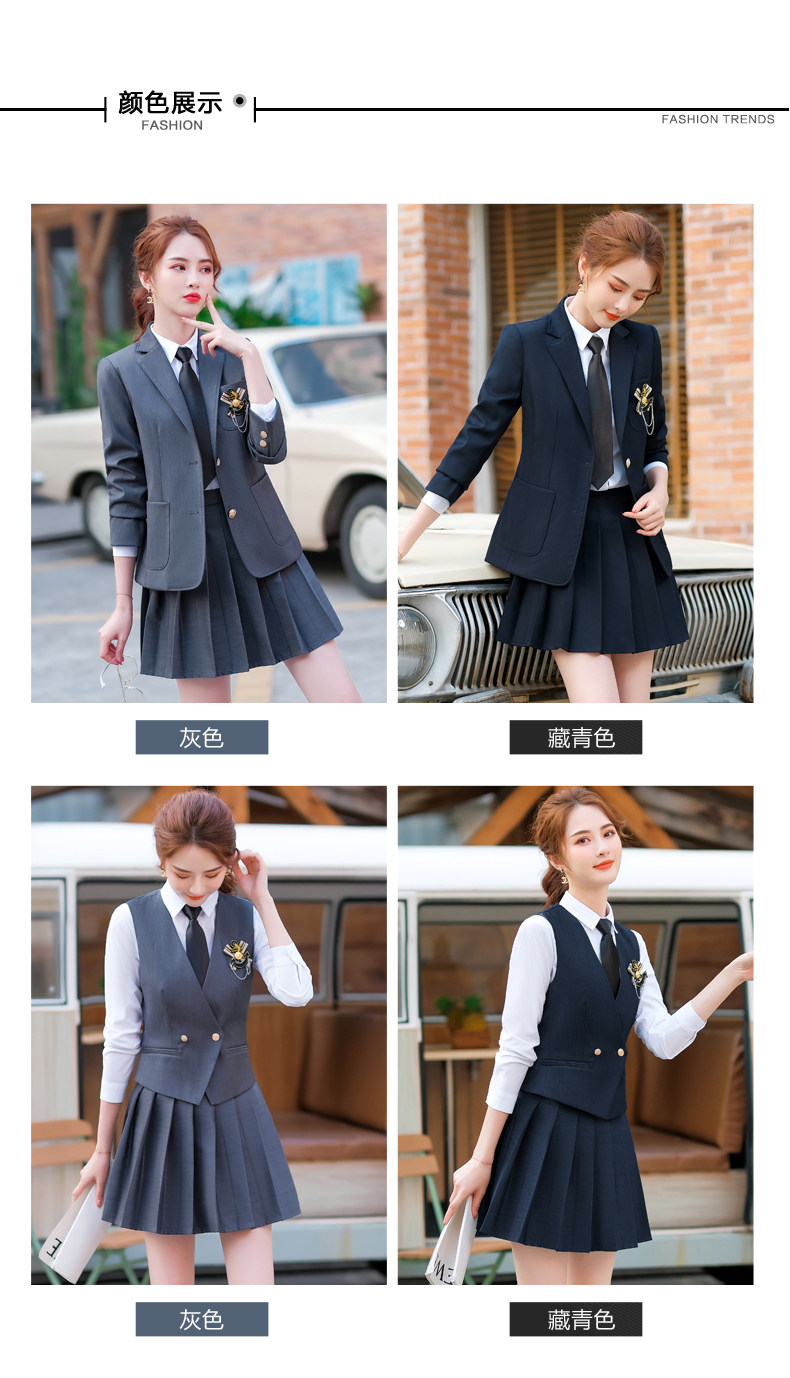 颜色分类: 灰色西装 藏青色西装 灰色西装+百褶裙 藏青色西装+百褶裙 灰色西装+百褶裙+白衬衫 藏青色西装+百褶裙+白衬衫 灰色西装+百褶裙+白衬衫+马甲 藏青色西装+百褶裙+白衬衫+马甲