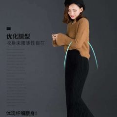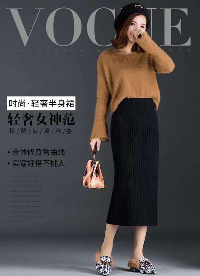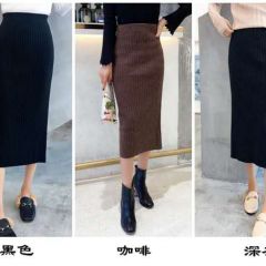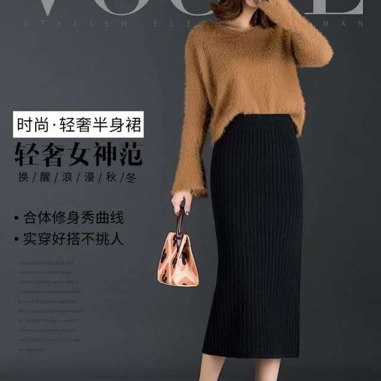 秋冬新款针织羊毛高腰半身裙女中长款毛线裙开叉包臀裙一步裙