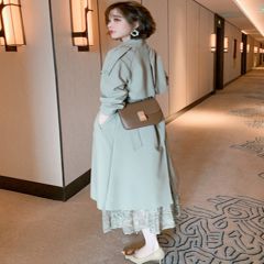 衣门襟: 双排扣 颜色分类: 绿色+绿色 白色+杏色 组合形式: 两件套