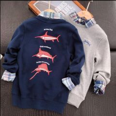 品牌: other/其他 适用年龄: 4岁 5岁 6岁 7岁 8岁 9岁 10岁 11岁 12岁 13岁 14岁 面料: 棉 图案: 其他 风格: 休闲 产地: 中国大陆 适用性别: 中性 模特实拍: 实拍无模特 衣门襟: 套头是否带帽子: 无 颜色分类: 灰色鲨鱼单款卫衣,不含衬衫 藏蓝鲨鱼单款卫衣,不含衬衫 灰色鲨鱼一