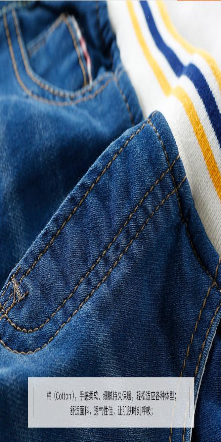 品牌: other/其他 型号: 02 适用年龄: 4岁 5岁 6岁 7岁 8岁 9岁 10岁 11岁 12岁 13岁 14岁 面料: 棉 是否开裆: 不开裆 风格: 休闲 裤腰: 中腰产地: 中国大 适用性别: 中性 模特实拍: 实拍无模特 颜色分类: 黑色牛仔裤 蓝色牛仔裤 裤门襟: 皮筋腰带 货号: 20020 参考身高: 吊牌110码建议110cm 吊牌120码建议120cm 吊牌130码建议130cm 吊牌140码建议140cm 吊牌150码建议150cm 吊牌160码建议160cm 适用季节: 春秋 裤长: 长裤 裤子分类: 普通休闲裤 安全等级: B类 材质成分: 棉95% 聚氨酯弹性纤维(氨纶)5%