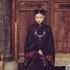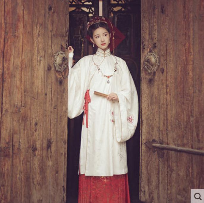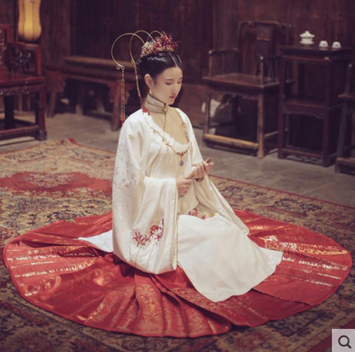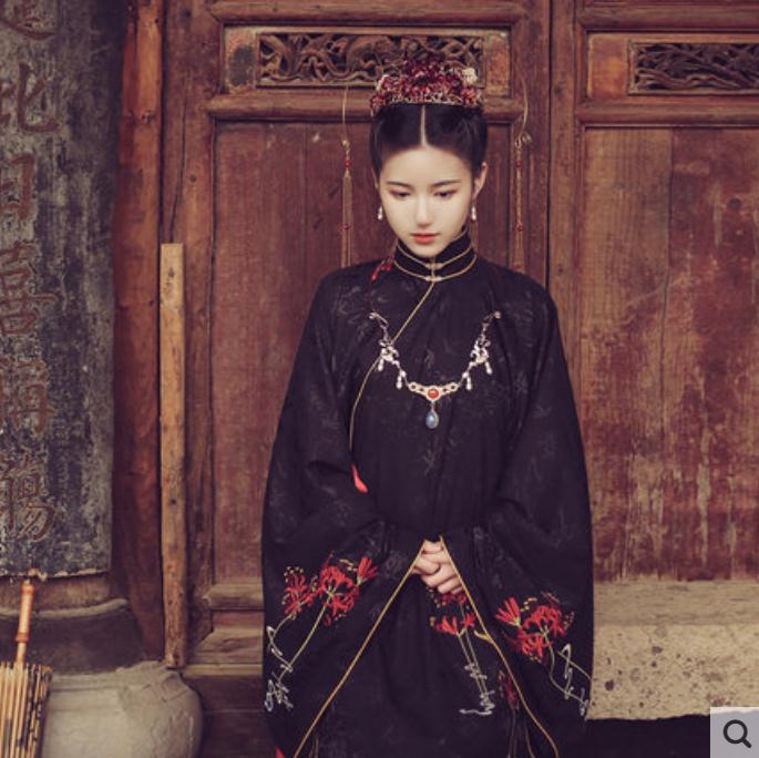 曼珠沙华:洛离 原创改良汉服彼岸花提花长袄6米摆织金马面