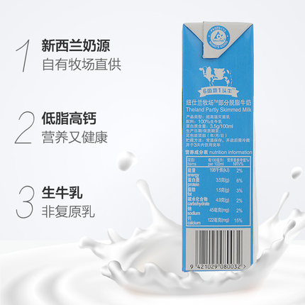 新西兰进口牛奶纽仕兰高钙低脂纯牛奶250ml*24盒*1箱