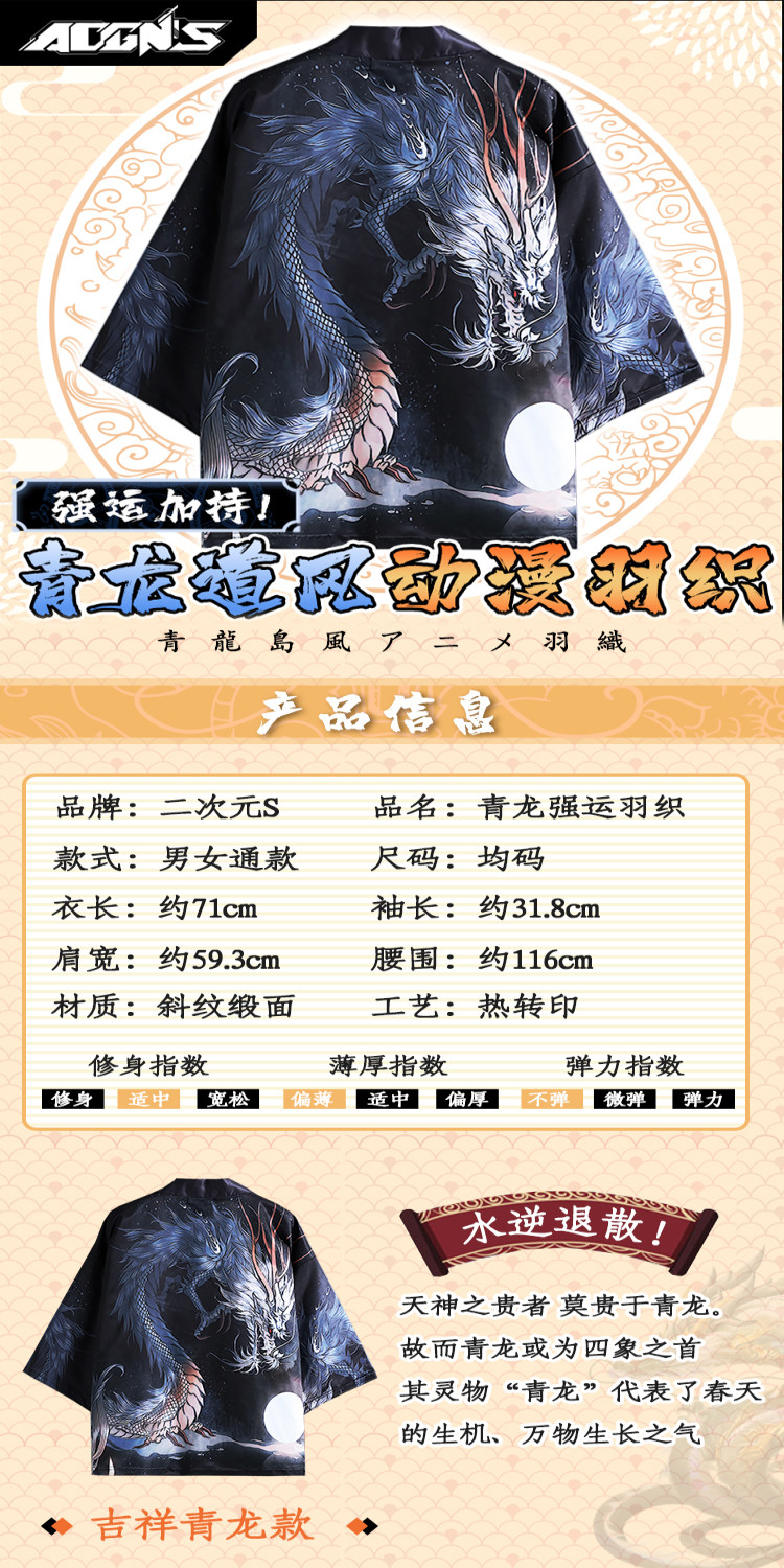 风格: 休闲 复古 文艺 日系 时尚潮流 适用季节: 不限季节 ACG作品名: 青龙羽织