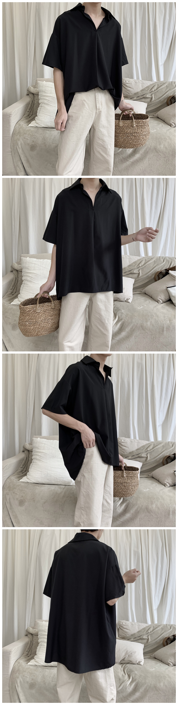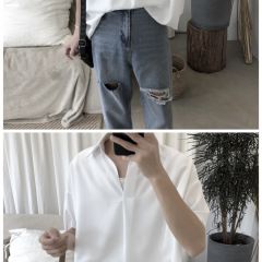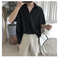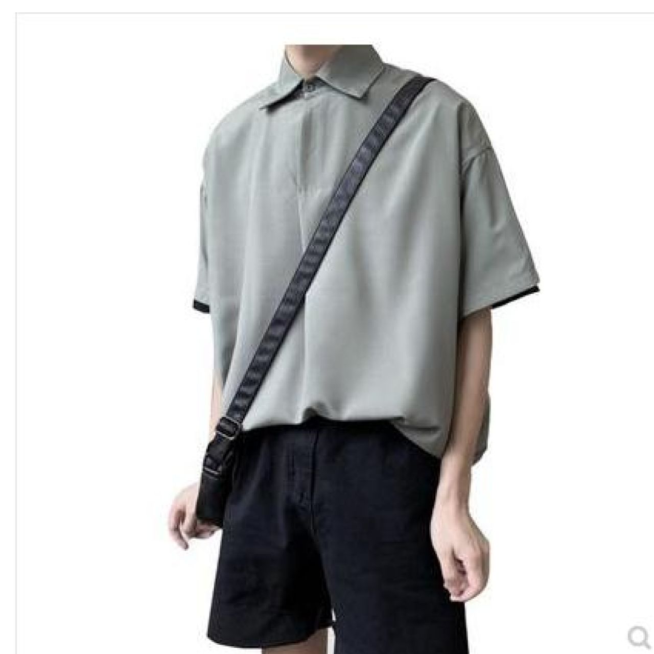 新夏季垂感短袖衬衫男设计感小众七分袖衬衣高级感潮男韩版潮流上