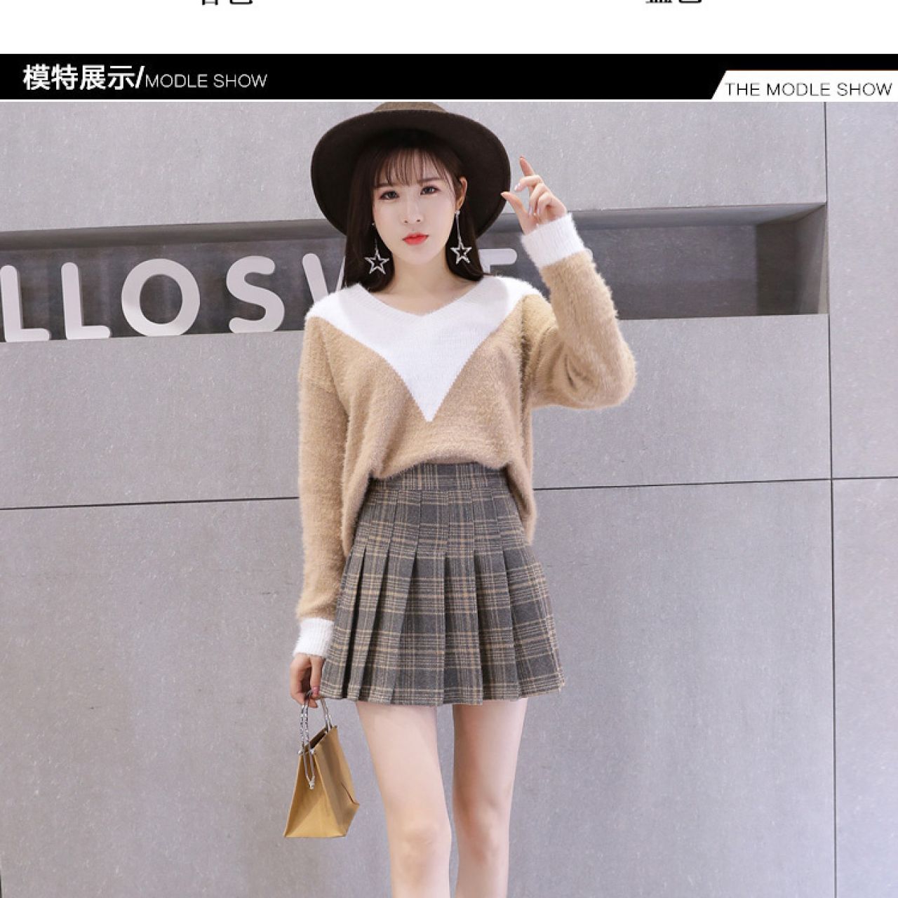 面料: 毛呢 图案: 格子 风格: 百搭