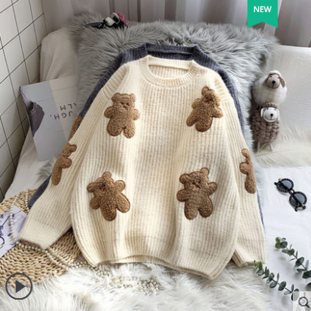 日系可爱套头毛衣女短款宽松外穿慵懒风上衣2020年新款秋装毛线衣