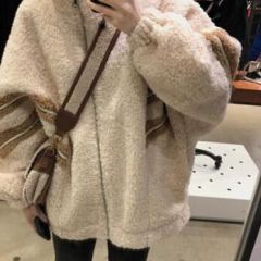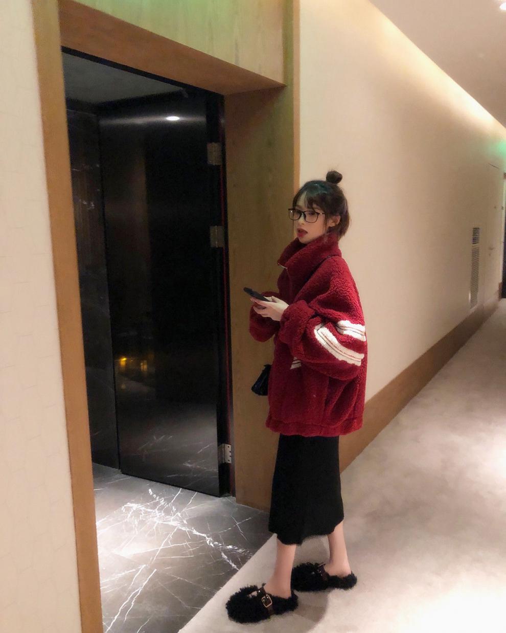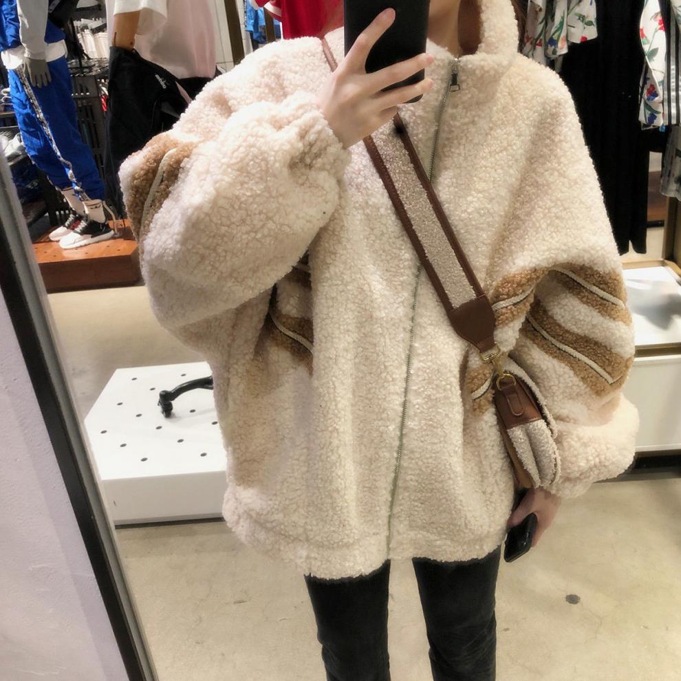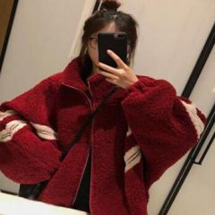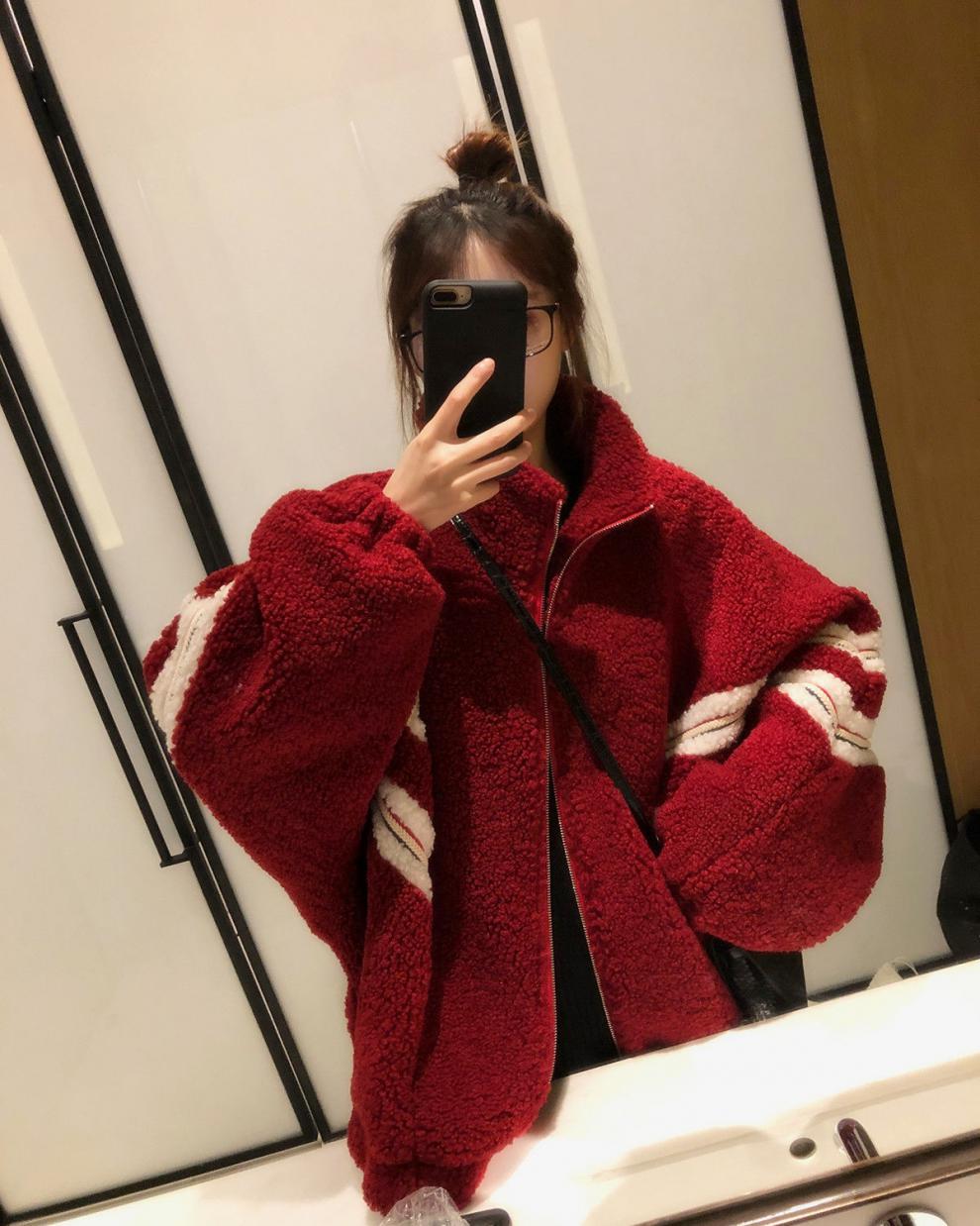 商品名称:韩国毛毛外套女秋冬新款宽松立领加厚保暖原宿bf大衣 红色 M
