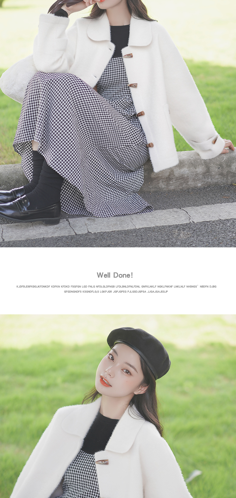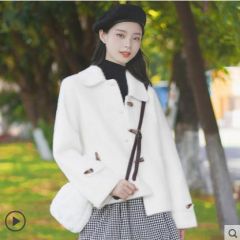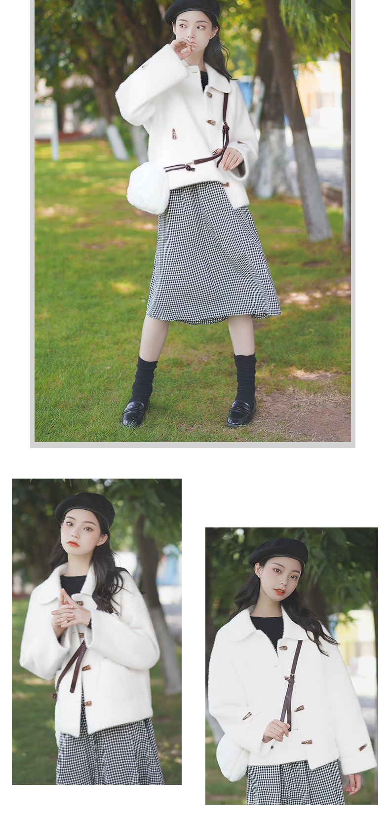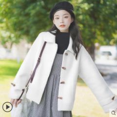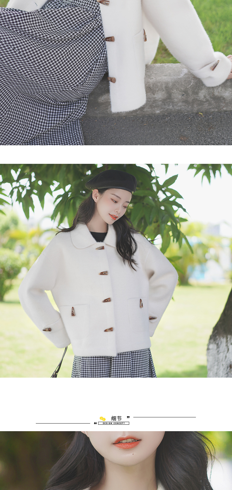 衣门襟: 牛角扣 颜色分类: 外套(白色) 外套(图片色) 内搭毛衣(杏色) 袖型: 常规