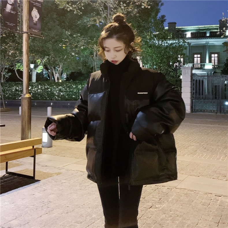 pu皮羽绒棉衣棉服oversize女ins潮港风加厚短款外套女秋冬小个子