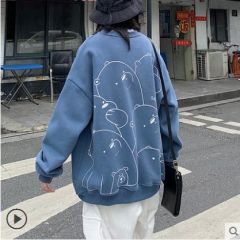 加绒加厚卫衣女韩版宽松学生百搭日系秋冬季上衣外套女2020年新款 蓝色 S