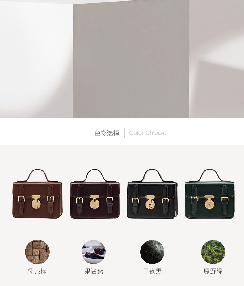 闭合方式: 锁扣 图案: 纯色 风格: 复古