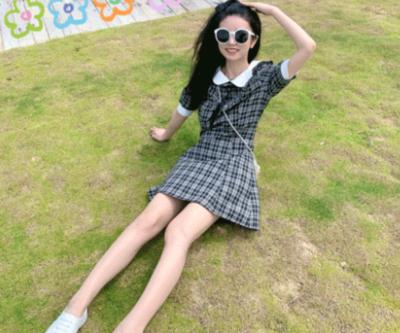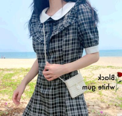 超仙黑色格子复古连衣裙甜美女神范学生修身显瘦气质短裙小个子夏