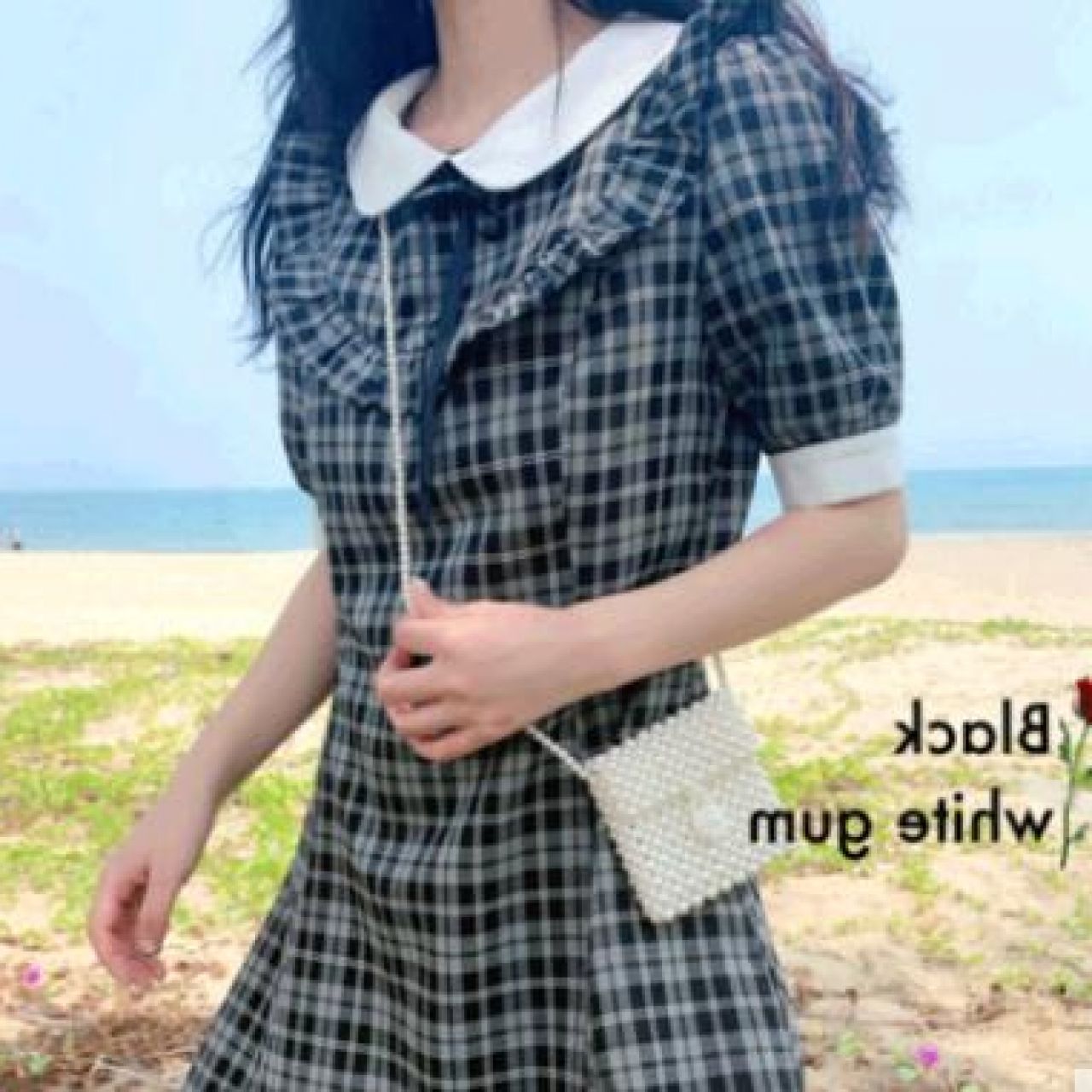 品牌: 欣纱露 适用年龄: 18-24周岁 尺码: S M L XL 图案: 格子风格: 通勤通勤: 韩版领型: 其他颜色分类: 黑白格袖型: 常规