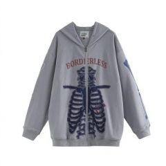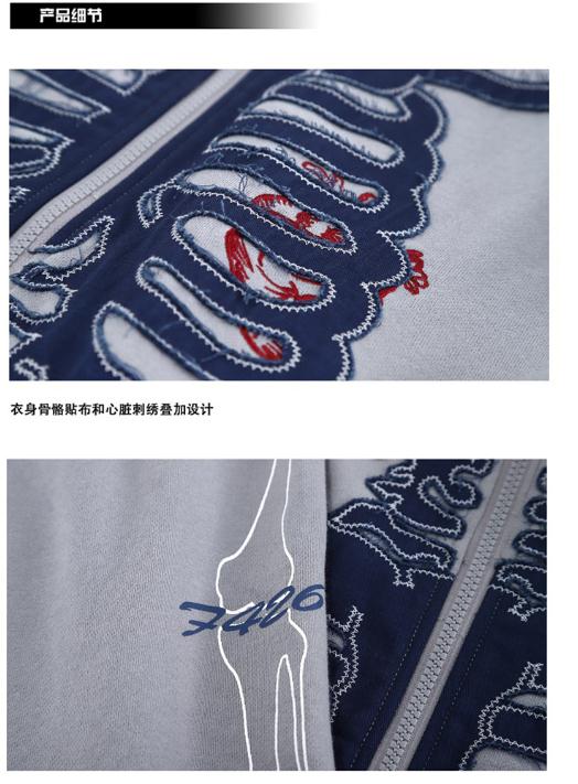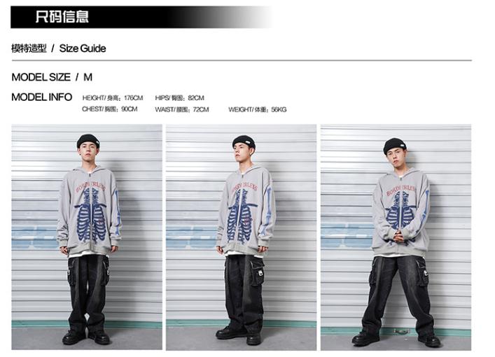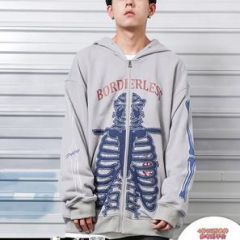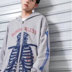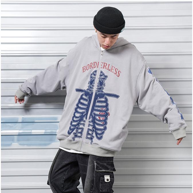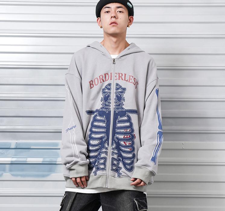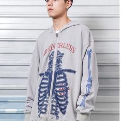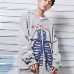 骨头印花卫衣潮牌男女宽松情侣休闲连帽开衫外套F426