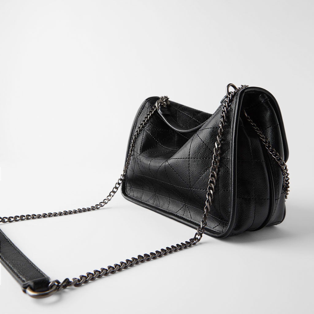 ZARA新款女包黑色摇滚风格软质钱包式超火百搭斜挎包