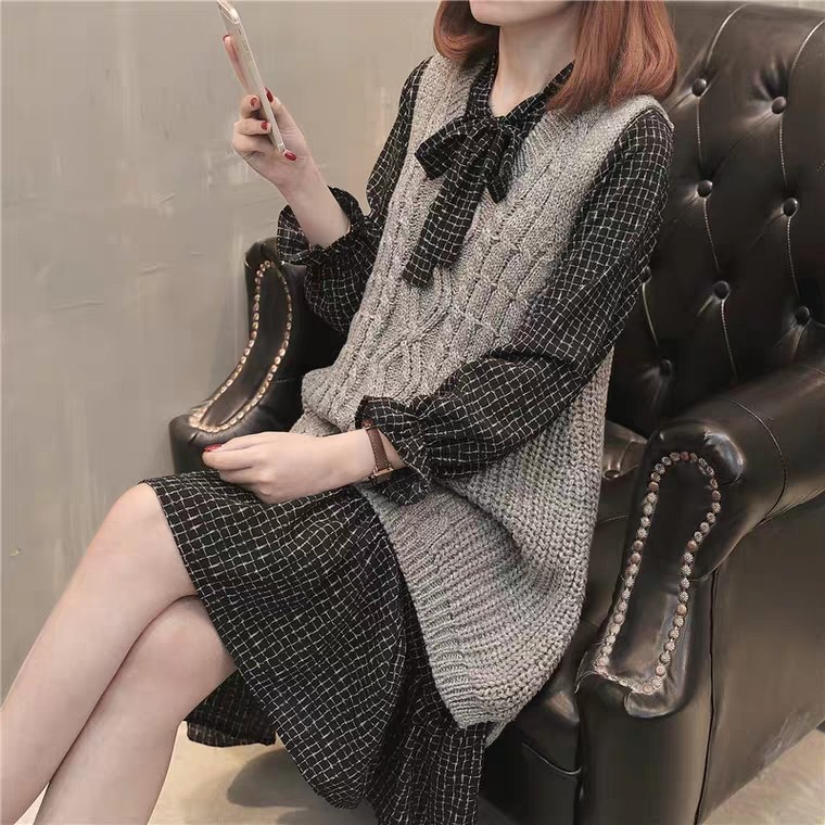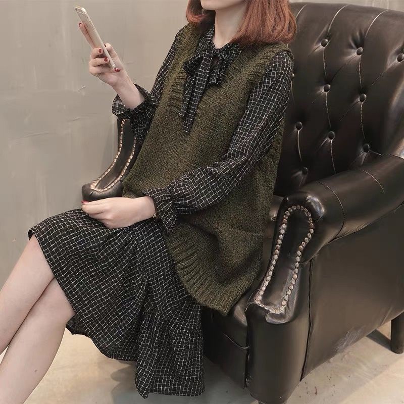 古妮萱连衣裙秋装女2020女装冬季新款韩版时尚套装大码秋天BM风泫雅衣服女士裙子针织衫毛衣两件套装裙