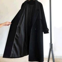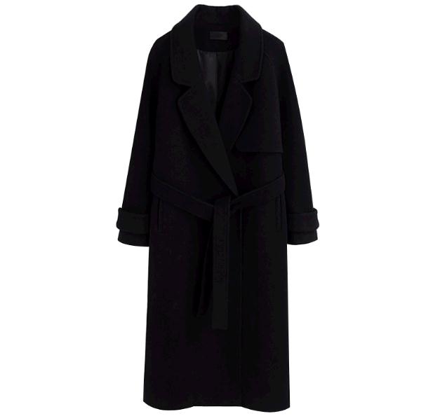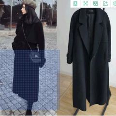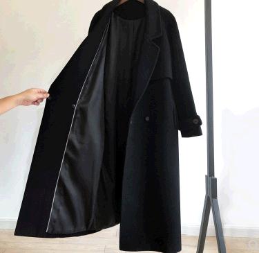 2020秋季女装新款韩版大衣女过膝中长款黑色羊毛呢外套赫本风