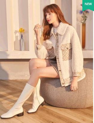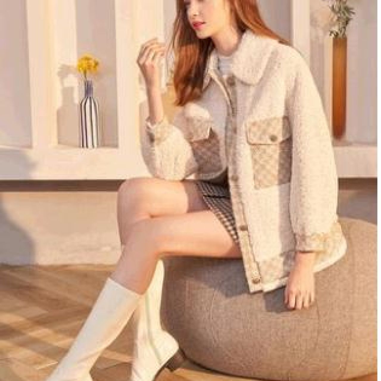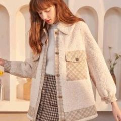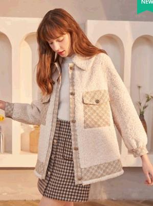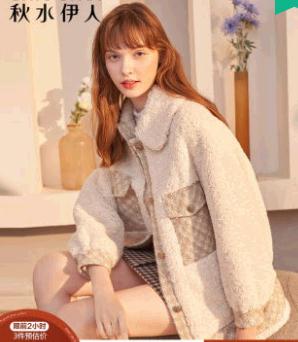 秋水伊人2020年冬季新品女装休闲拼接口袋翻领仿皮草外套上衣女