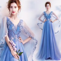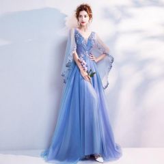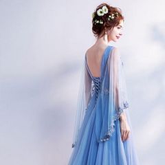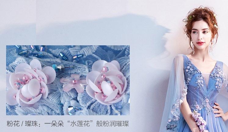 网红 修身V领 浪漫蓝色 敬酒