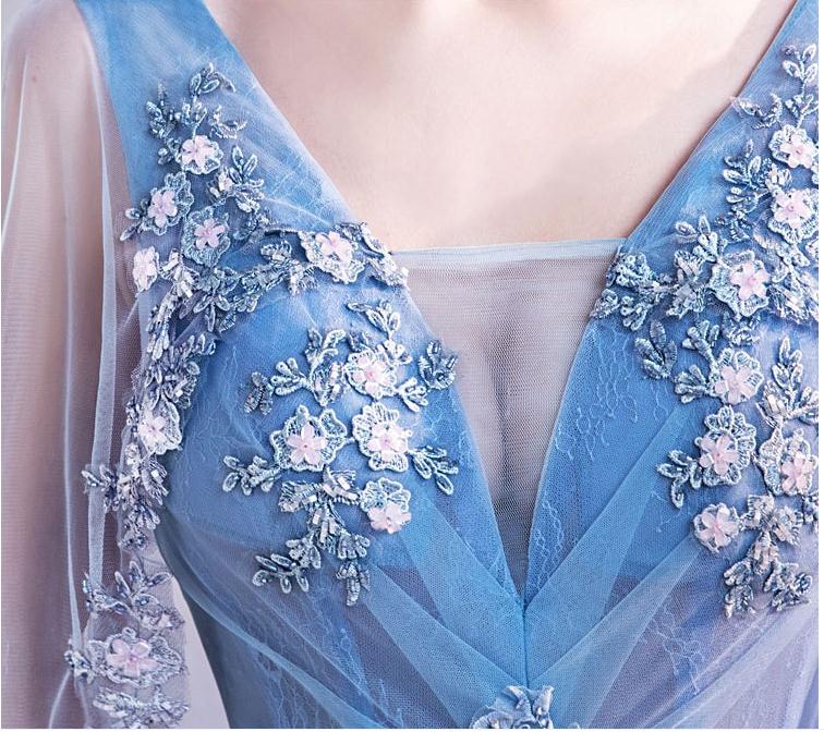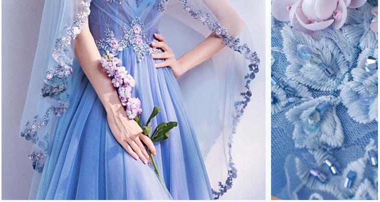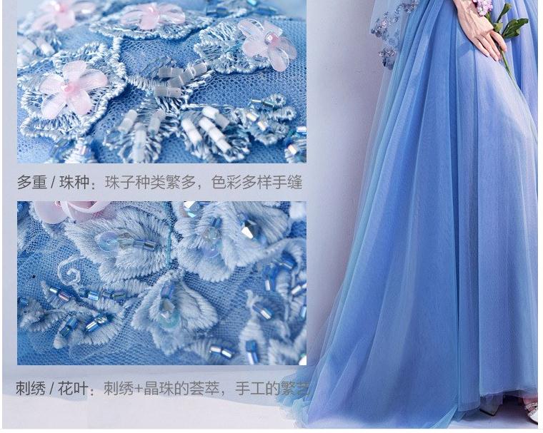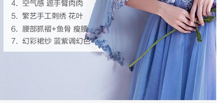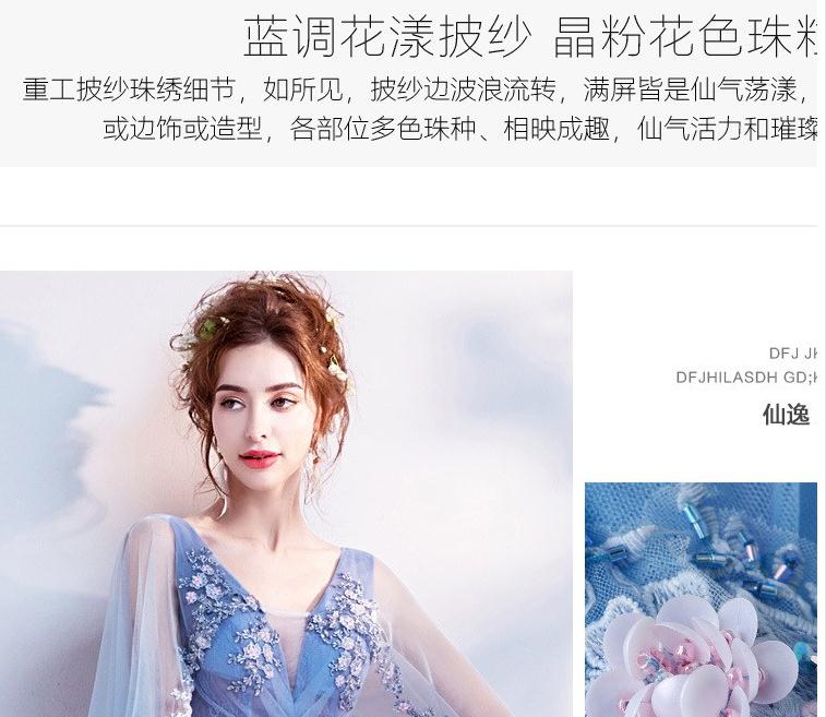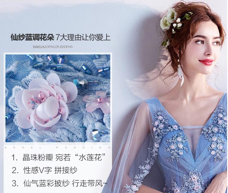 2020新款奢华璀璨浪漫蓝色V领新娘婚纱敬酒服晚宴年会礼服