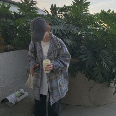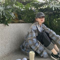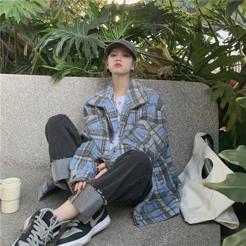 格子毛呢外套女2020秋冬新款韩版复古宽松显瘦中长款呢子夹克大衣