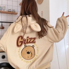 2020秋冬季女装新款上衣潮流可爱连帽长袖羊羔绒加绒加厚外套卫衣