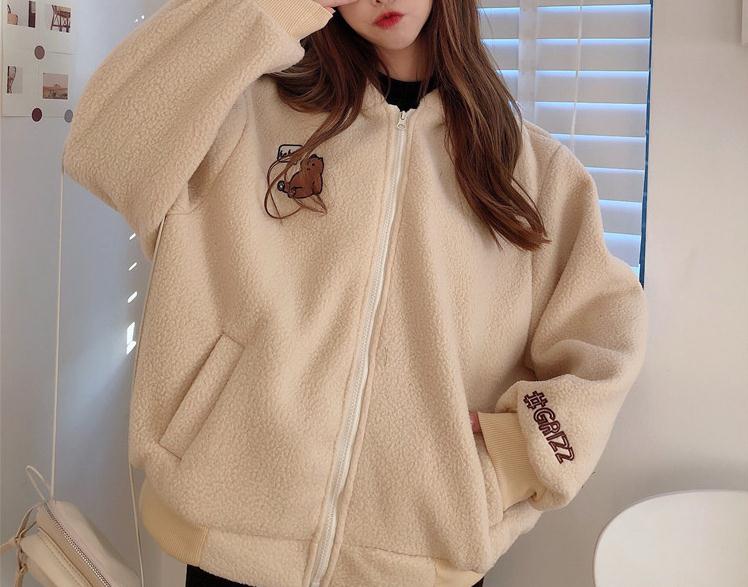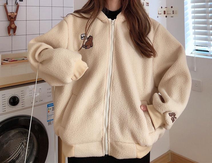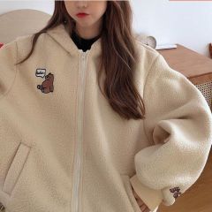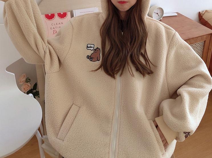 2020秋冬季女装新款上衣潮流可爱连帽长袖羊羔绒加绒加厚外套