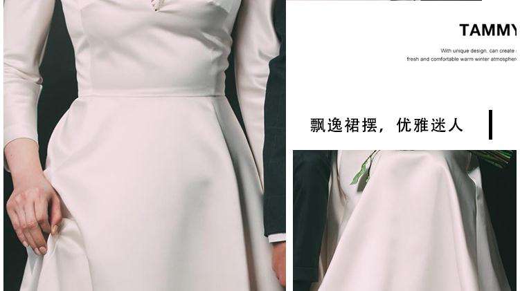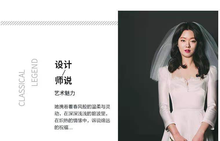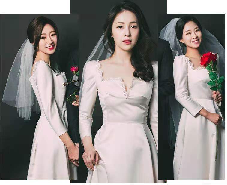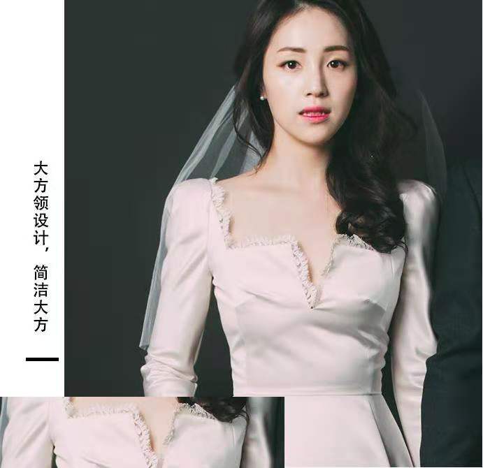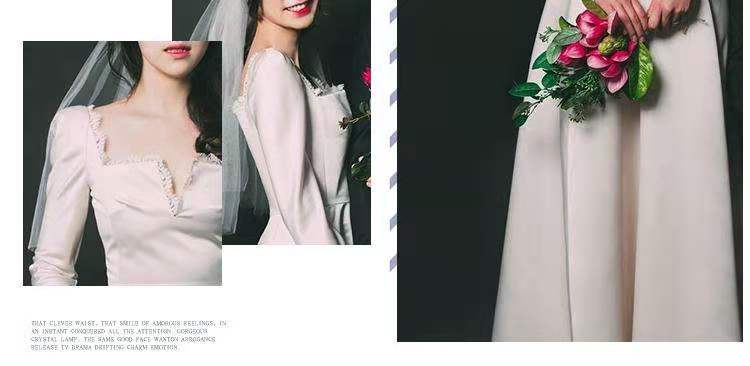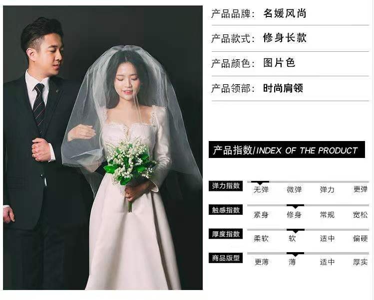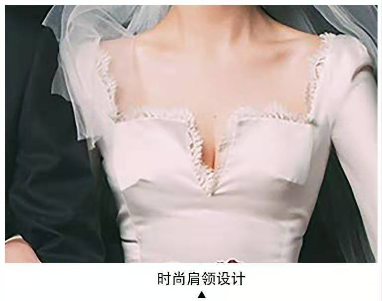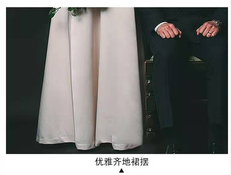 复古领法式轻婚纱小个子新娘婚礼出门纱缎面简约结婚照礼服齐地