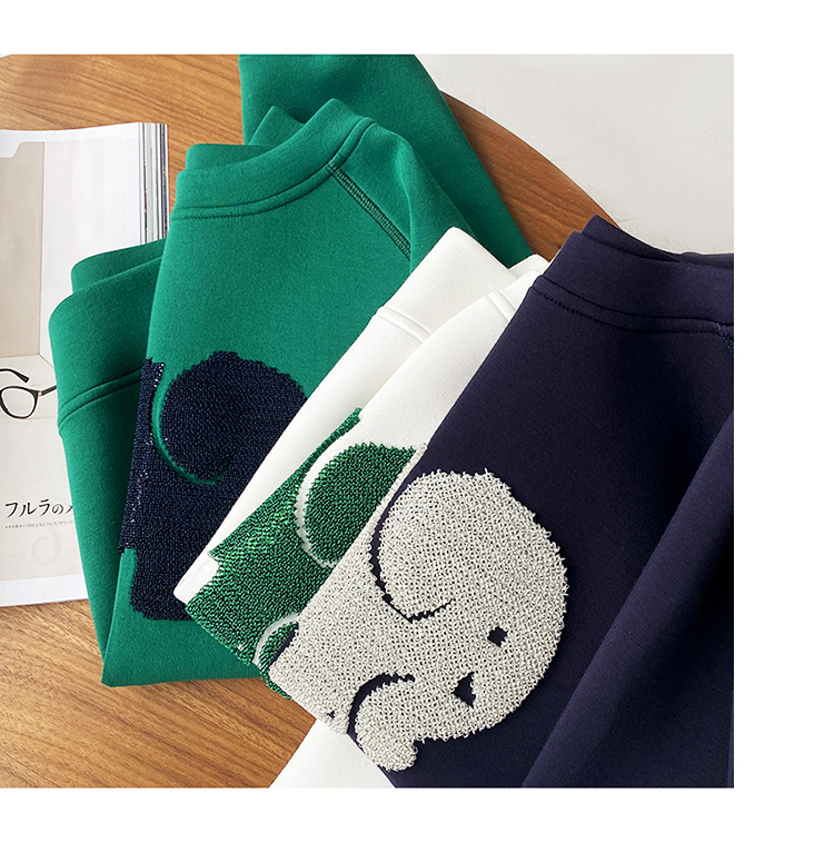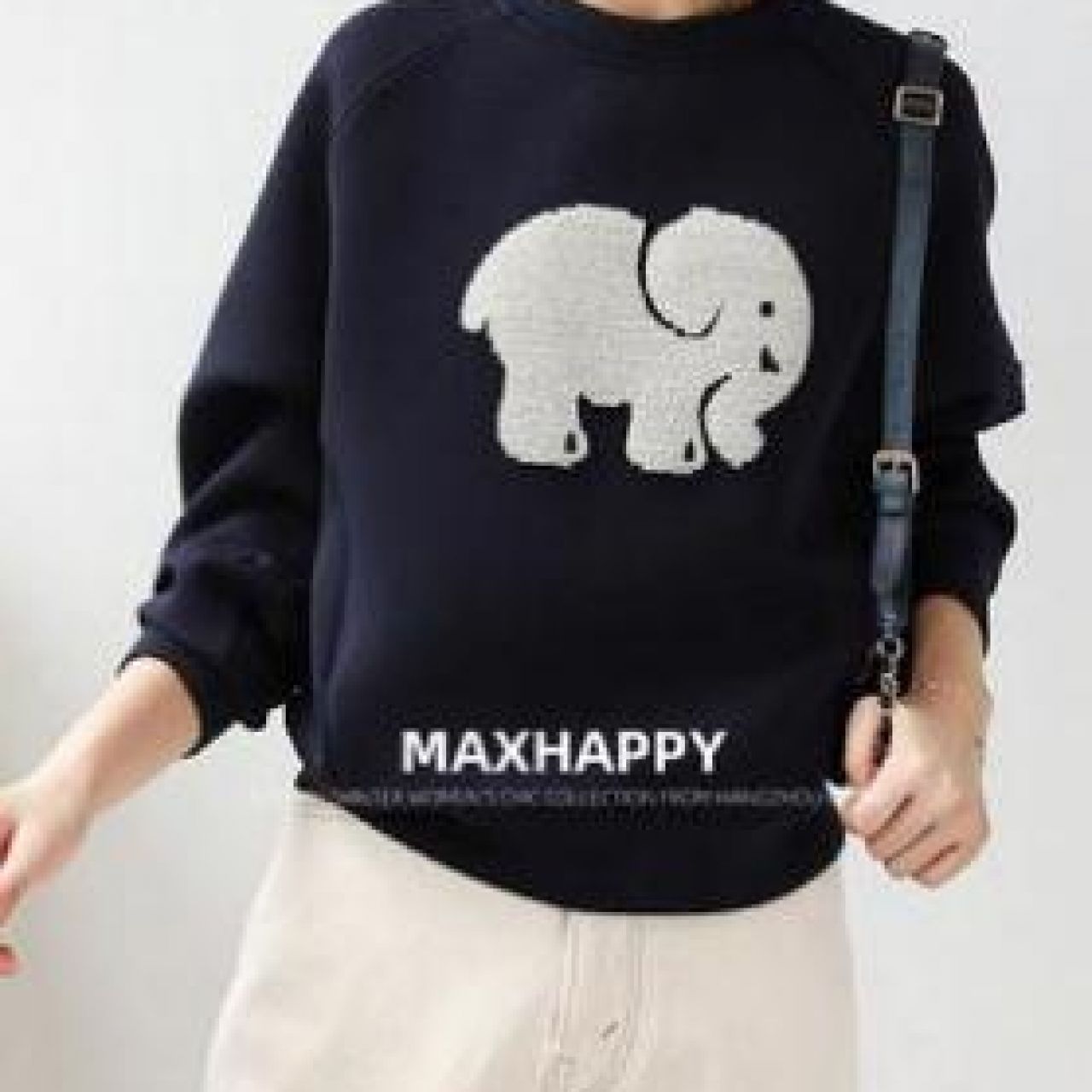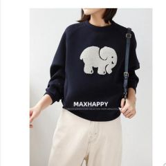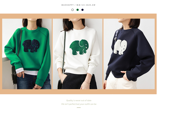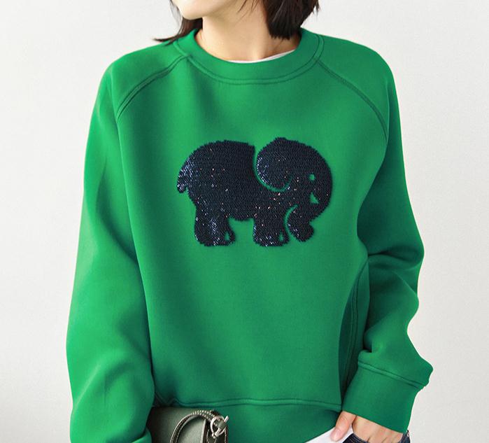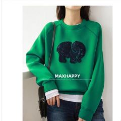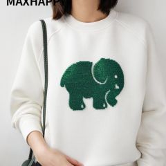 MAXHAPPY 青春减龄3色!大象亮片图案轻柔空气棉触感插肩袖卫衣女