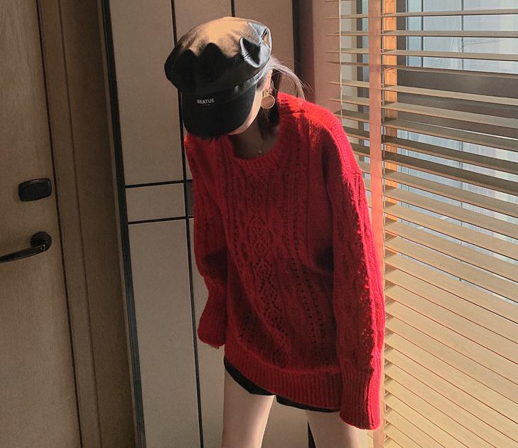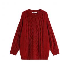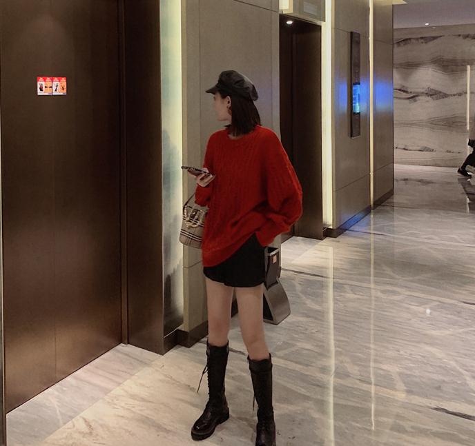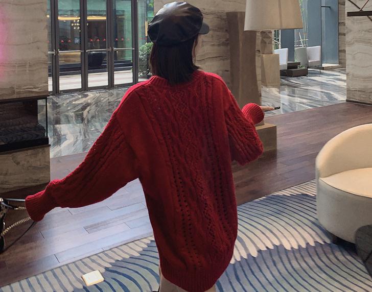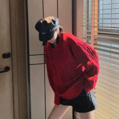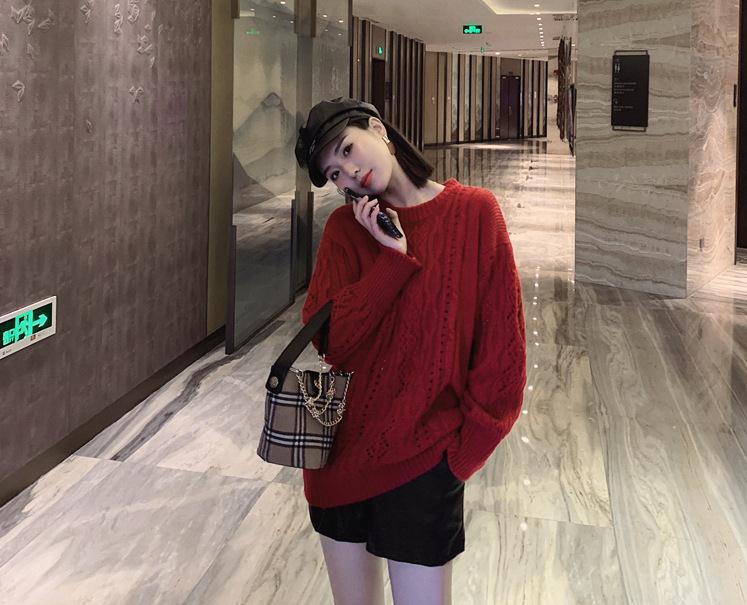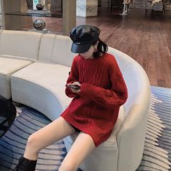爆款促销秋冬新款 韩版慵懒风宽松百搭加厚中长款红色毛衣针织衫