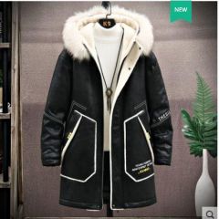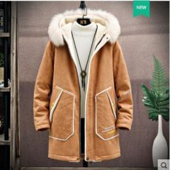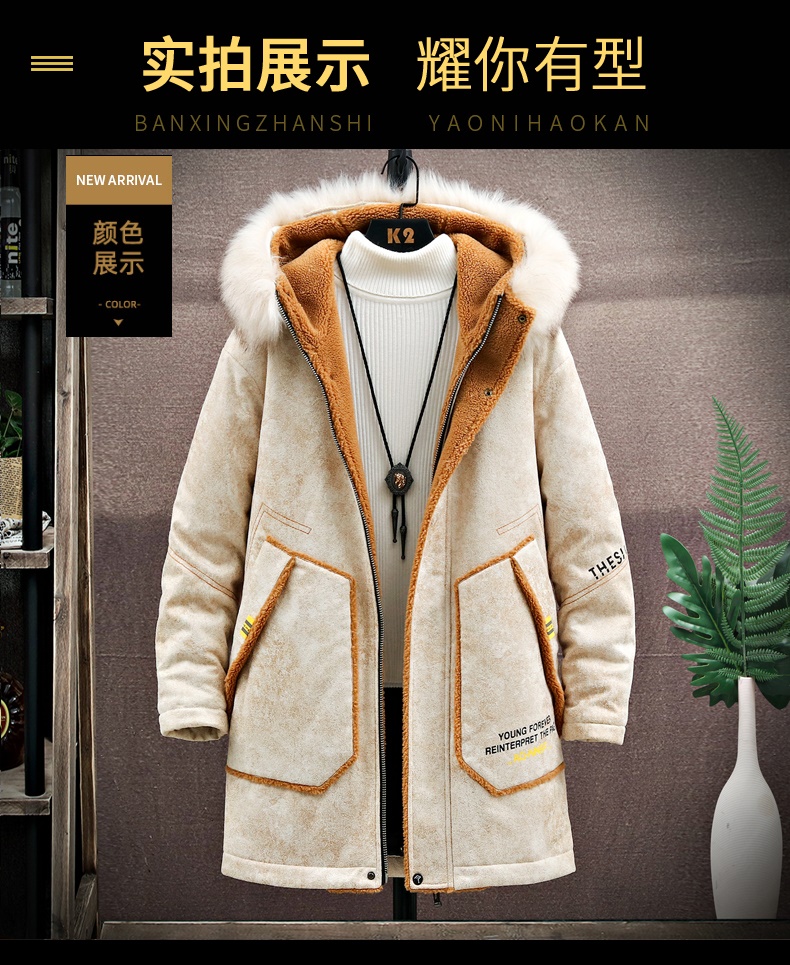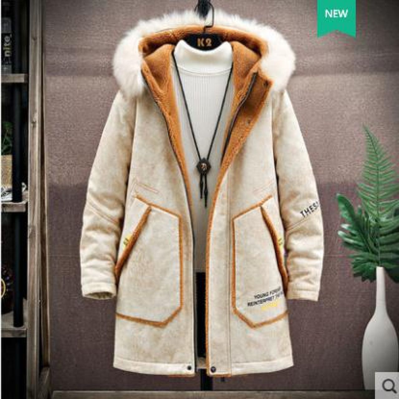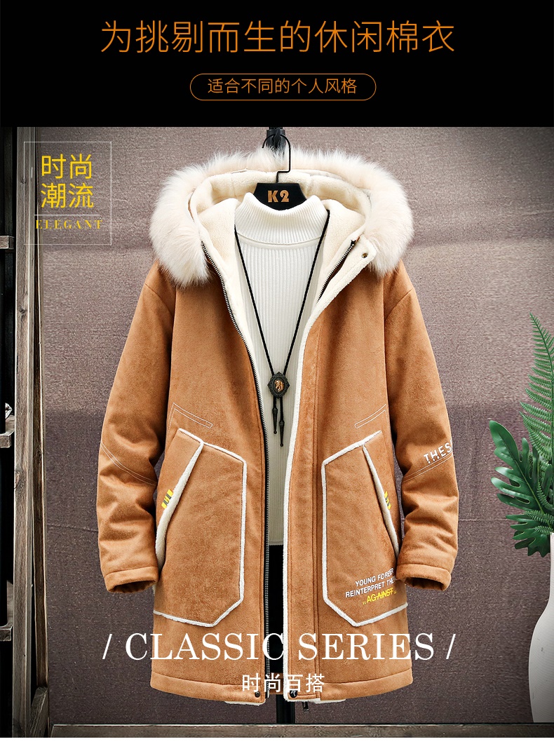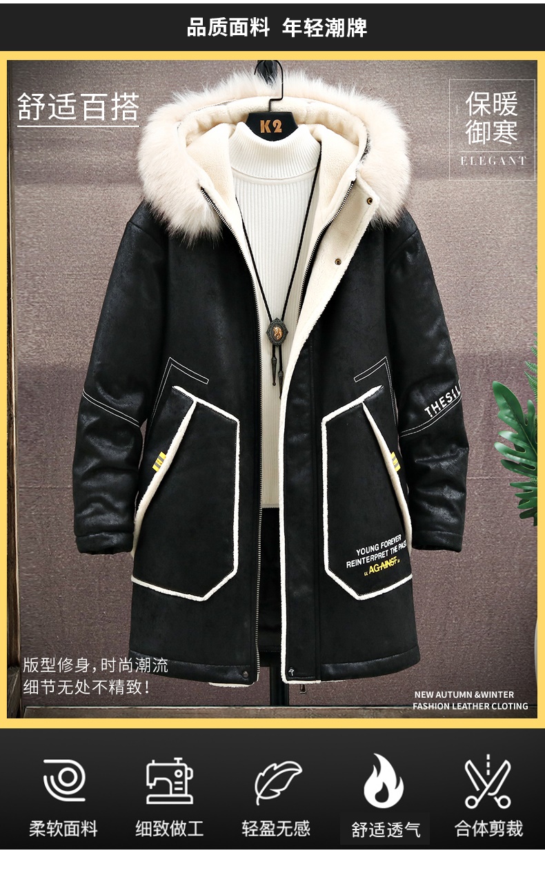 男中长款外套2020秋冬季新款麂皮绒韩版潮流仿羊羔绒加绒加厚夹克