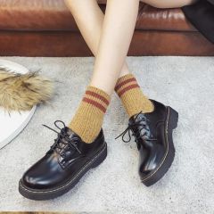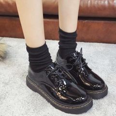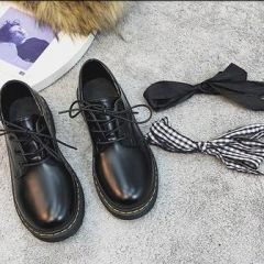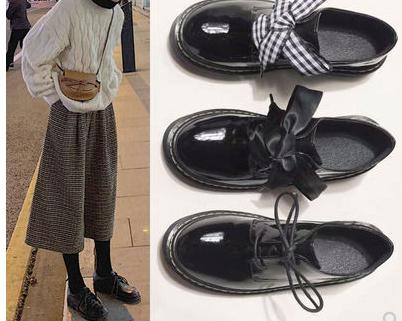 英伦风小皮鞋女复古秋冬新款学生韩版百搭软妹平底黑色日系加绒女