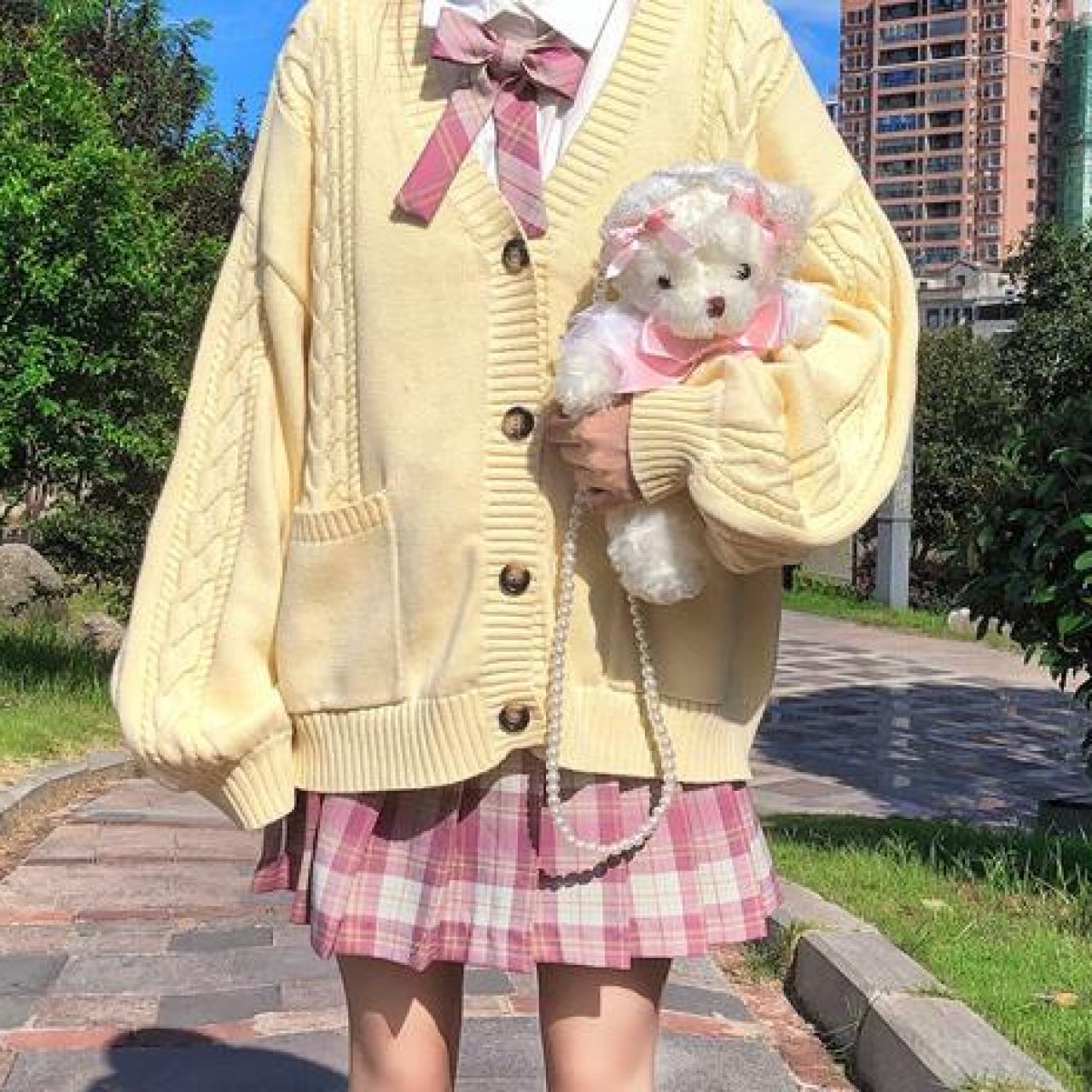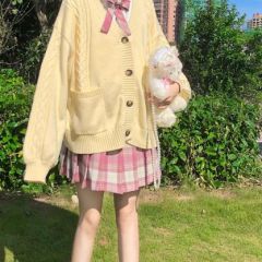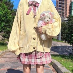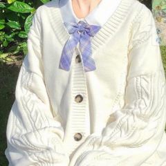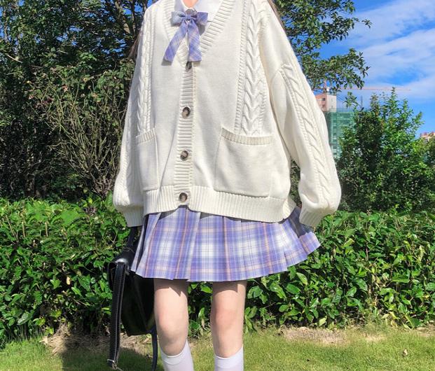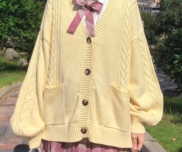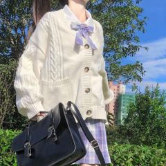 2020新款日系学院风JK制服毛衣宽松百搭麻花针织开衫外套女秋冬装