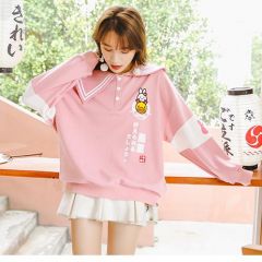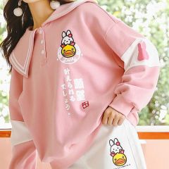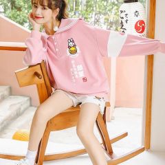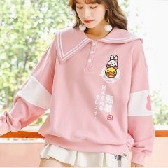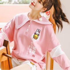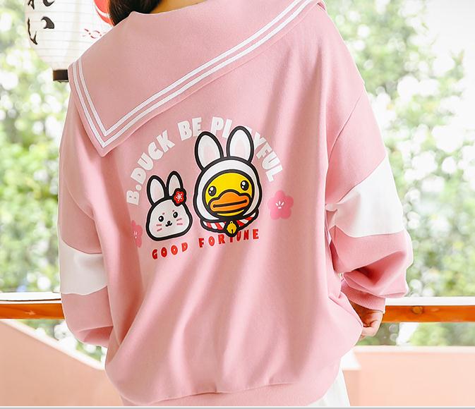小黄鸭甜美可爱少女宽松卫衣潮2020秋季新品印花不规则方领