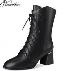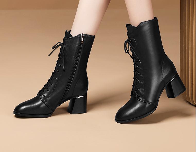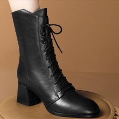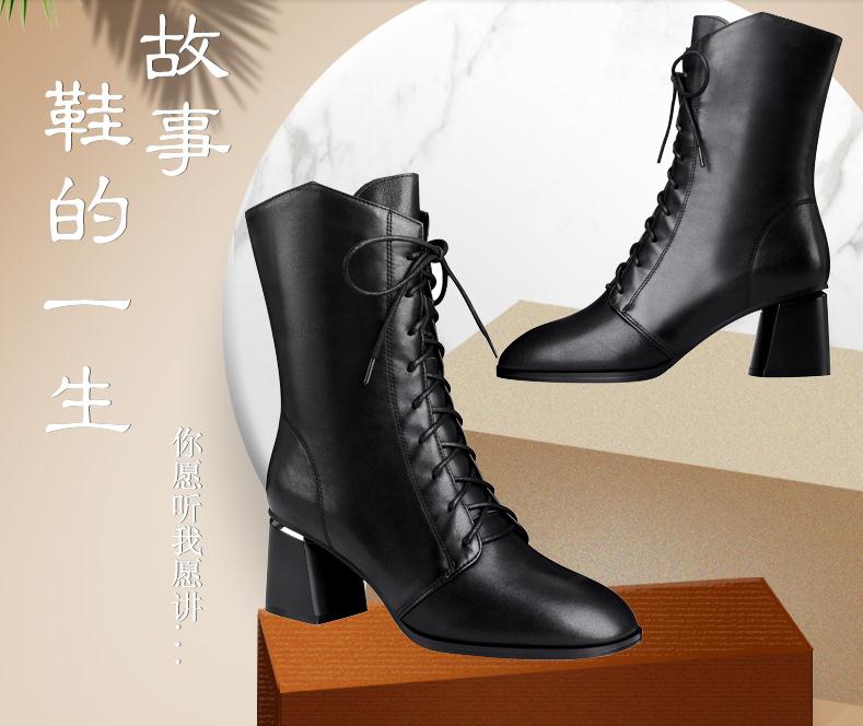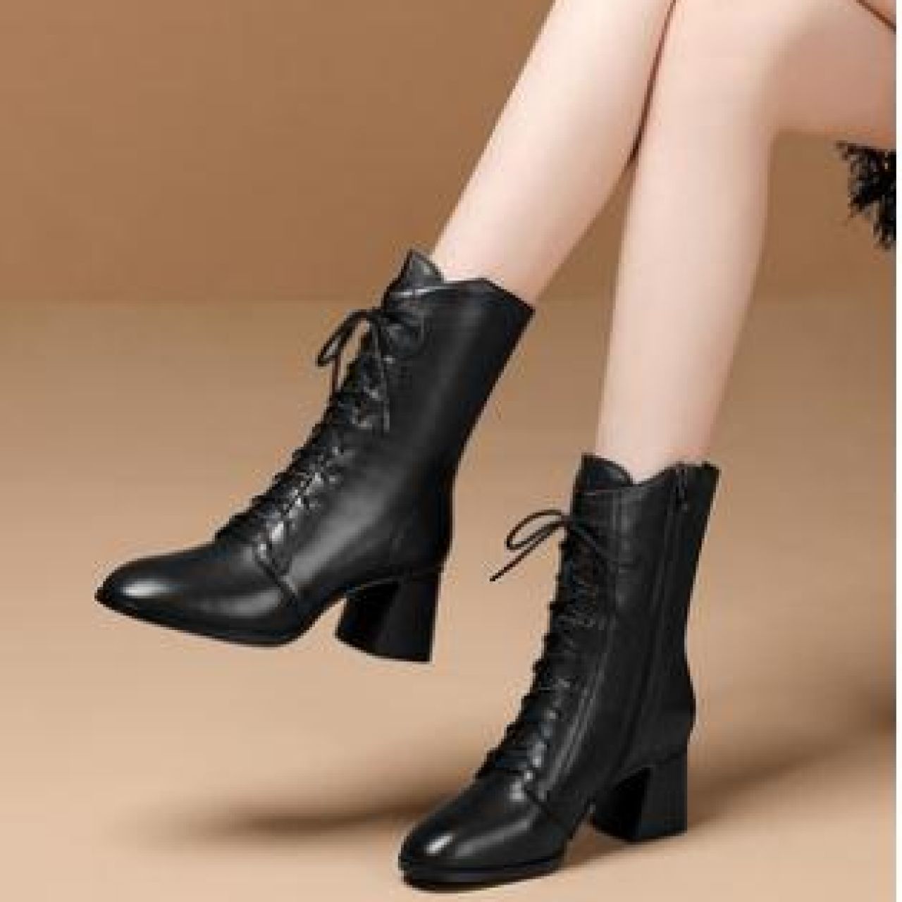 真皮马丁靴女英伦风2020秋冬新款中跟短靴高跟靴子中筒靴冬季加绒