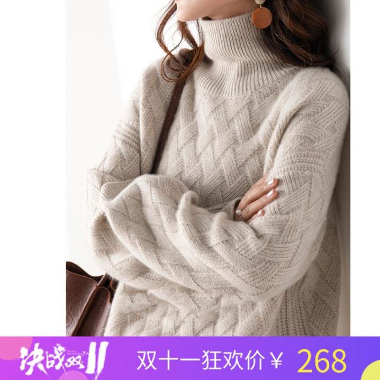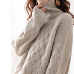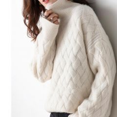 秋冬新款加厚高领100%纯羊毛衫毛衣女套头羊绒针织宽松慵懒打底衫