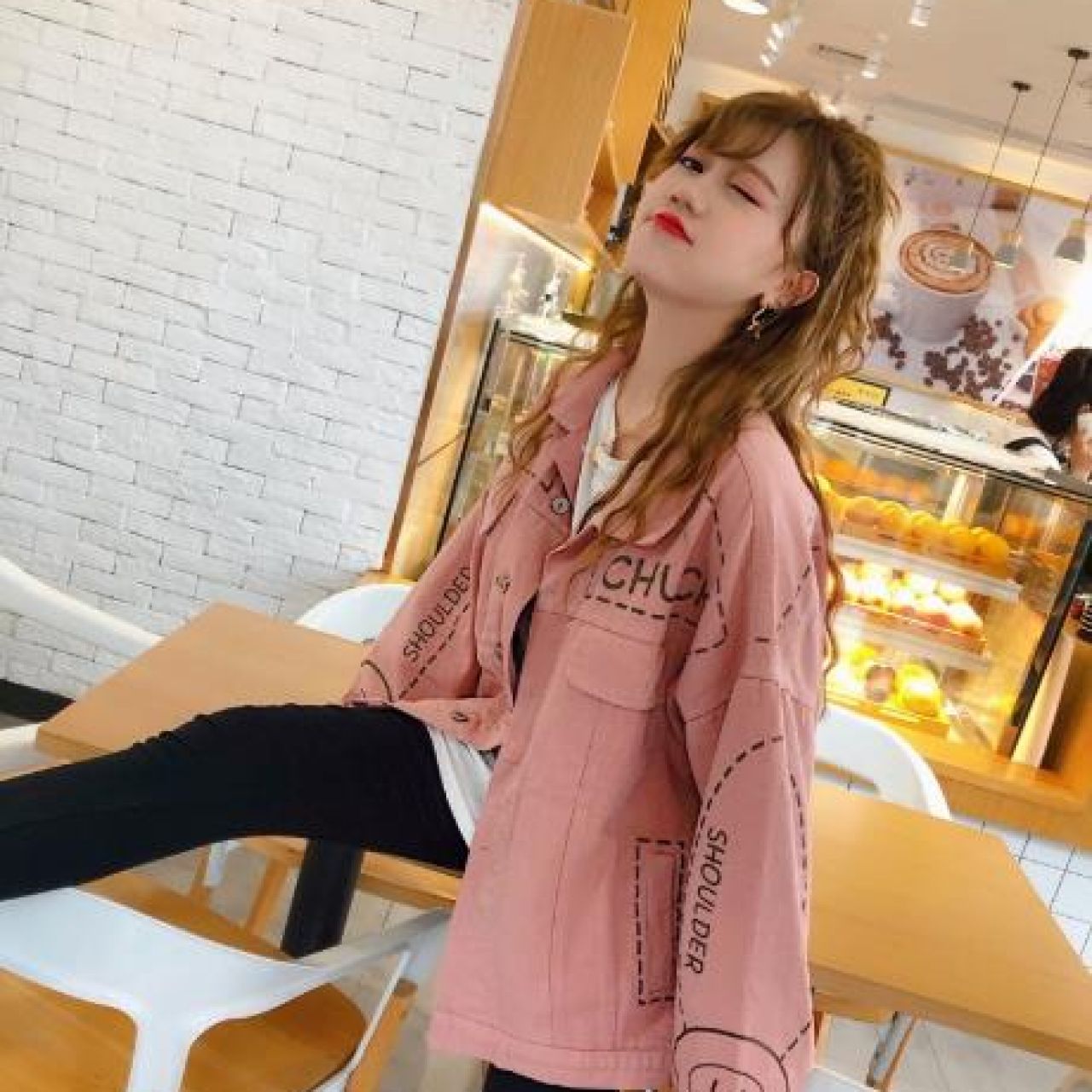 方潇文 秋冬韩风棒球服夹克 星星字母机器人贴布刺绣棉衣外套女潮