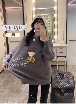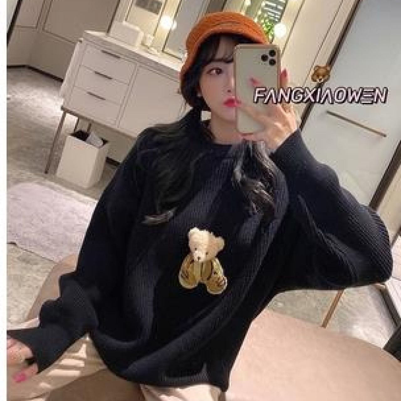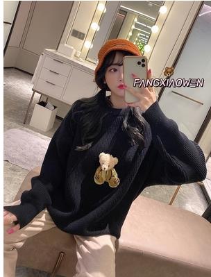 方潇文 秋冬韩版立体小熊垂感套头毛衣 显瘦BF慵懒风保暖针织衫女