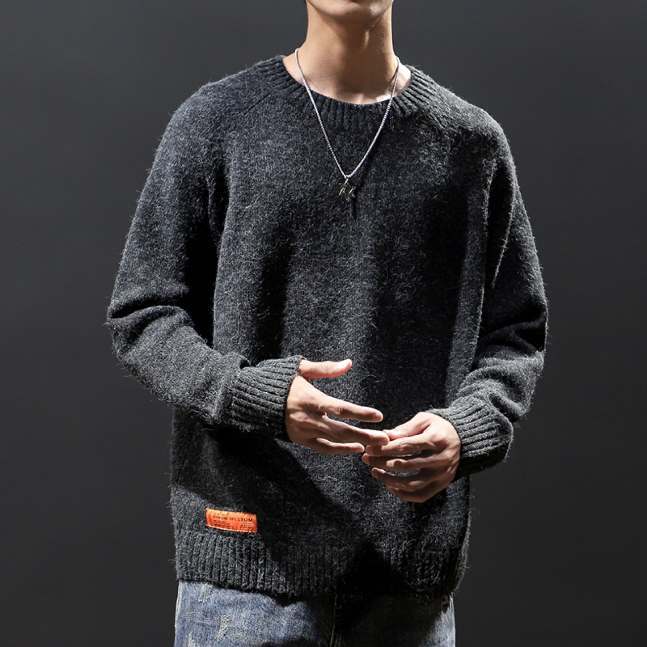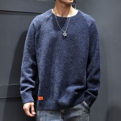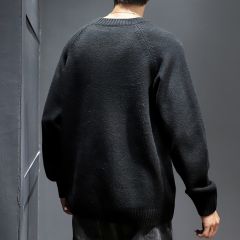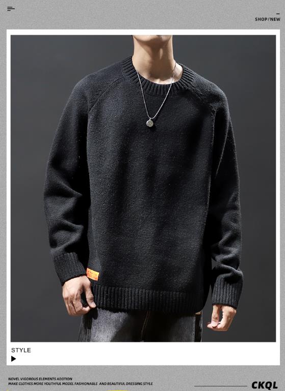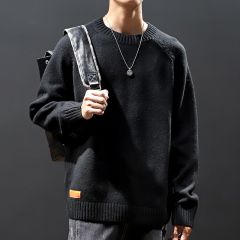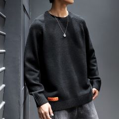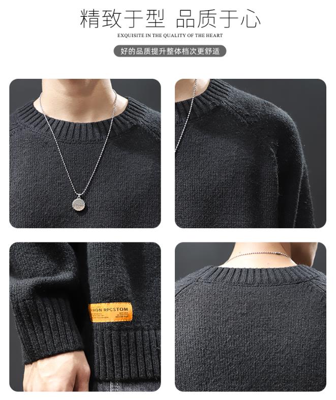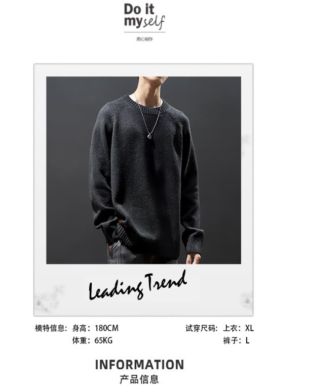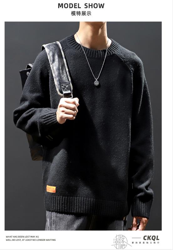 冬季大码胖子圆领毛衣男宽松日系潮牌加肥加大黑色针织衫打底毛衣