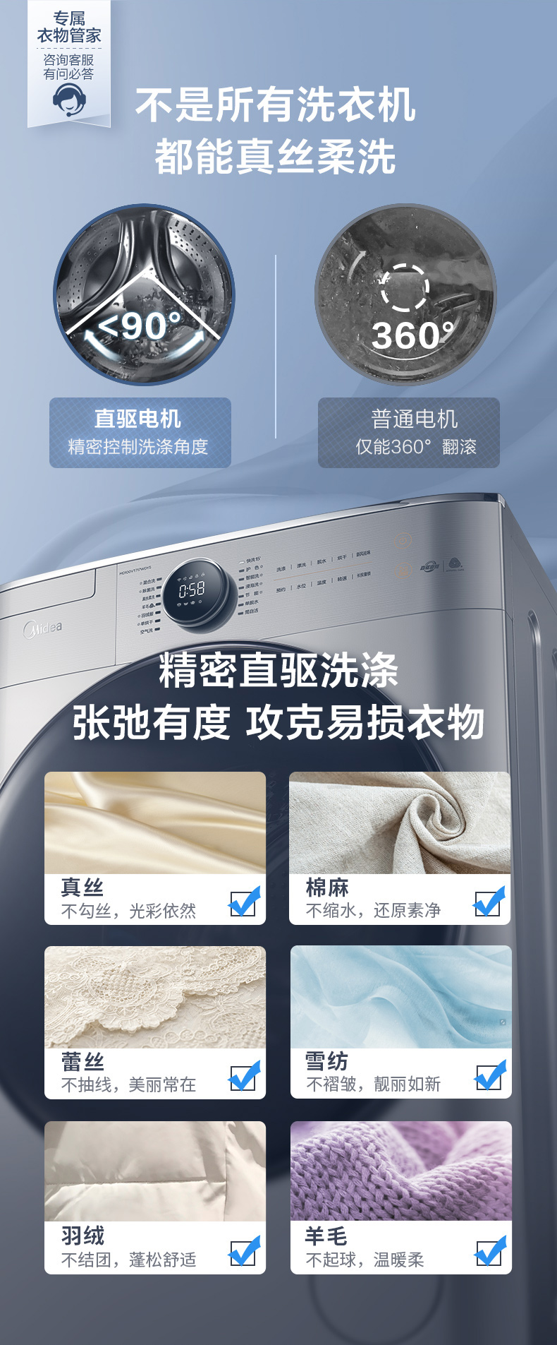 美的直驱系列10公斤智能全自动家用洗衣机烘干机一体机