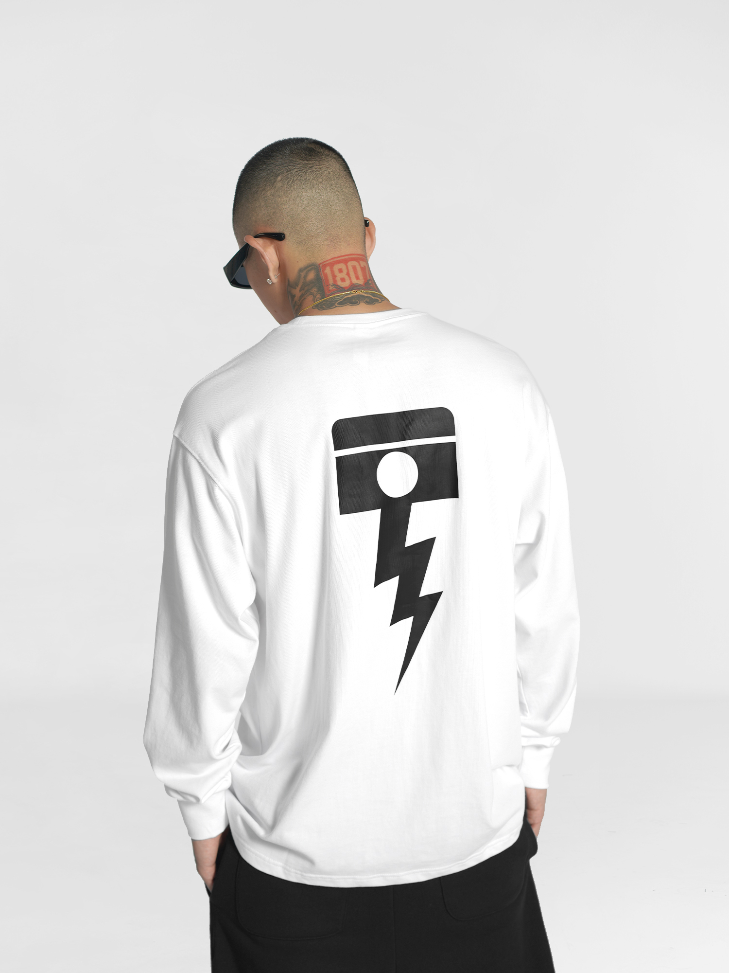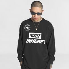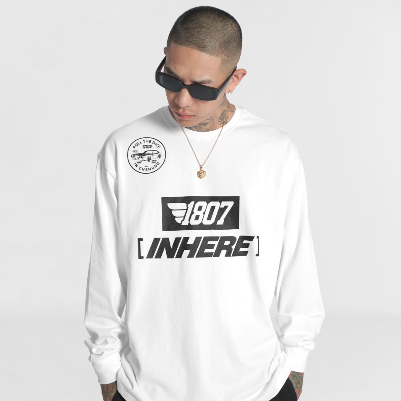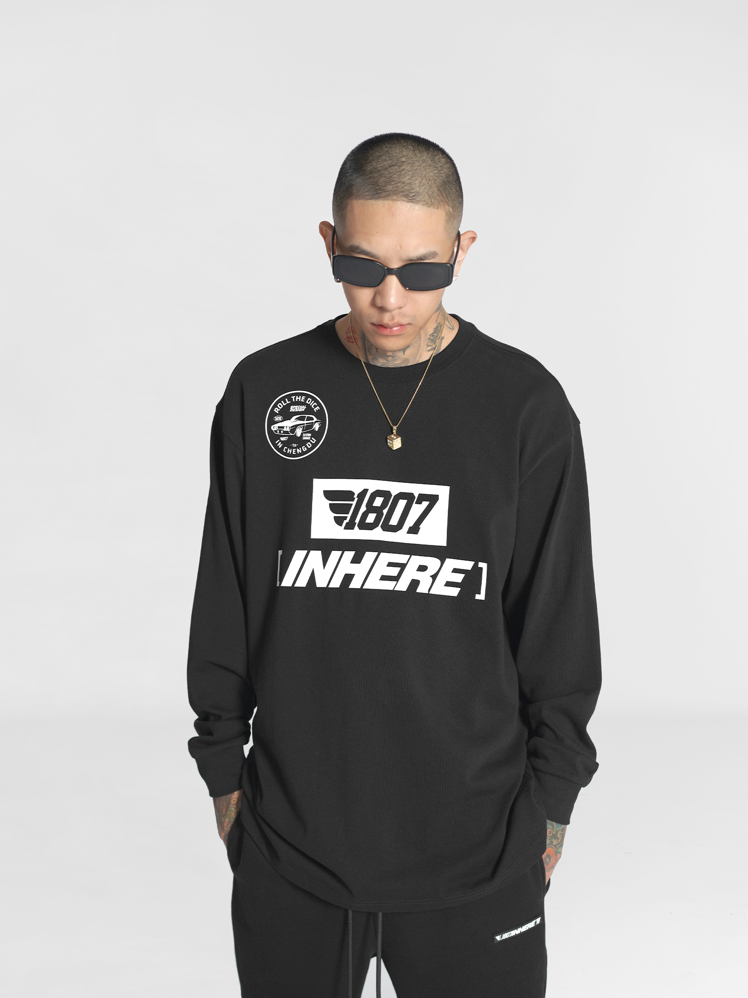 1807inhere秋季基础款长袖圆领打底潮流印花宽松嘻哈情侣装t恤衫