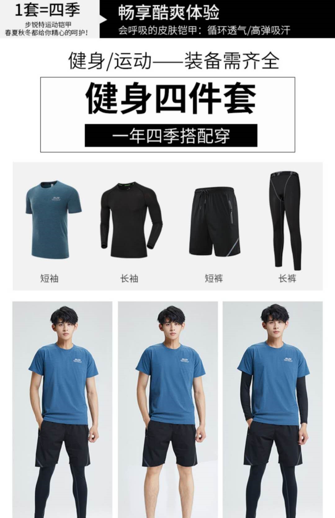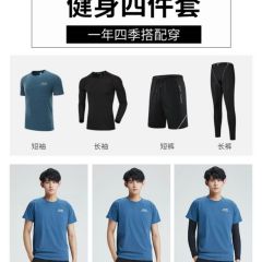 跑步套装男运动健身房篮球装备训练紧身速干夜跑春秋冬季健身衣服